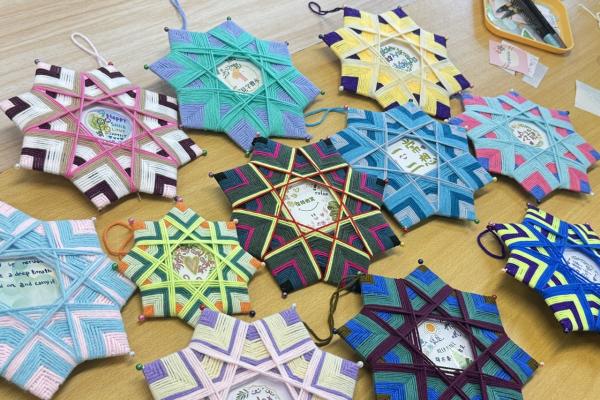 本校一向重視和關心家長的精神健康,本次邀請和諧之家到校舉辦正念星之花家長工作坊,星之花是一種手工編織的掛飾,家長能在輕鬆愉快的氛圍中編織星之花,可以在專注的過程中獲得放鬆和平靜的感覺,舒緩平日的生活壓力。