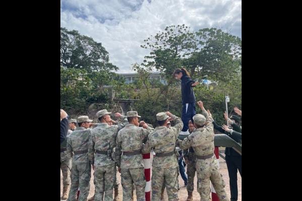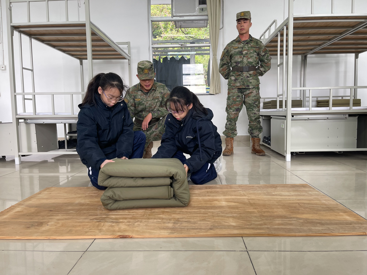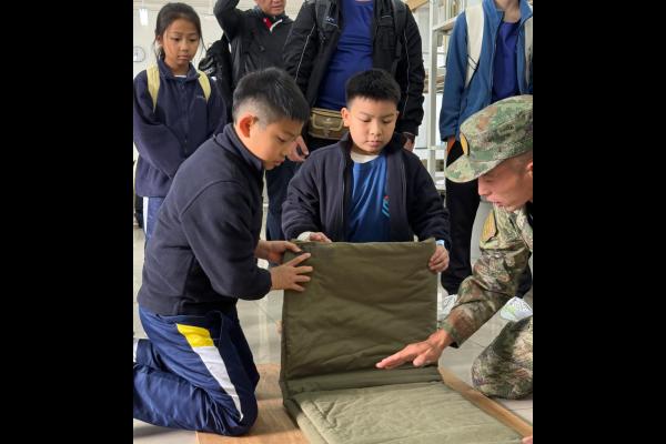 樂天升旗隊獲少年警訊總會邀請,日前往赤柱軍營參觀及學習。軍營中解放軍軍官威風凜凜,莊嚴肅穆,展現中國解放軍的嚴謹的訓練。解放軍們態度親切,耐心解說,同學們認真聆聽。同學們在軍官的帶領下有序地參觀了不同的槍械和軍事用車,更參觀了解放軍宿舍,親身體驗了著名的豆腐磚摺被法。最後,同學們體驗了解放軍平時的訓練項目,又參觀著名的赤柱炮台,了解當年炮台如何守護香港的作戰歷史。同學於今次的活動獲益良多,了解作為軍人的嚴格紀律,相信能有助於往後的升旗隊訓練中。