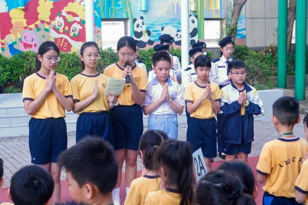 為慶祝中華人民共和國成立七十六周年,本校全體師生於國慶日前夕一同進行升旗禮,隨着國旗緩緩升起,大家一起高唱國歌。及後,老師以國家的科技發展為題,為同學進行國旗下講話,勉勵學生為祖國的繁榮昌盛貢獻力量。最後,透過一起聆聽《保衛黃河》,讓學生體會到中國人民保家衛國的精神,並珍惜國家來之不易的和平。