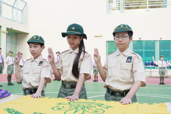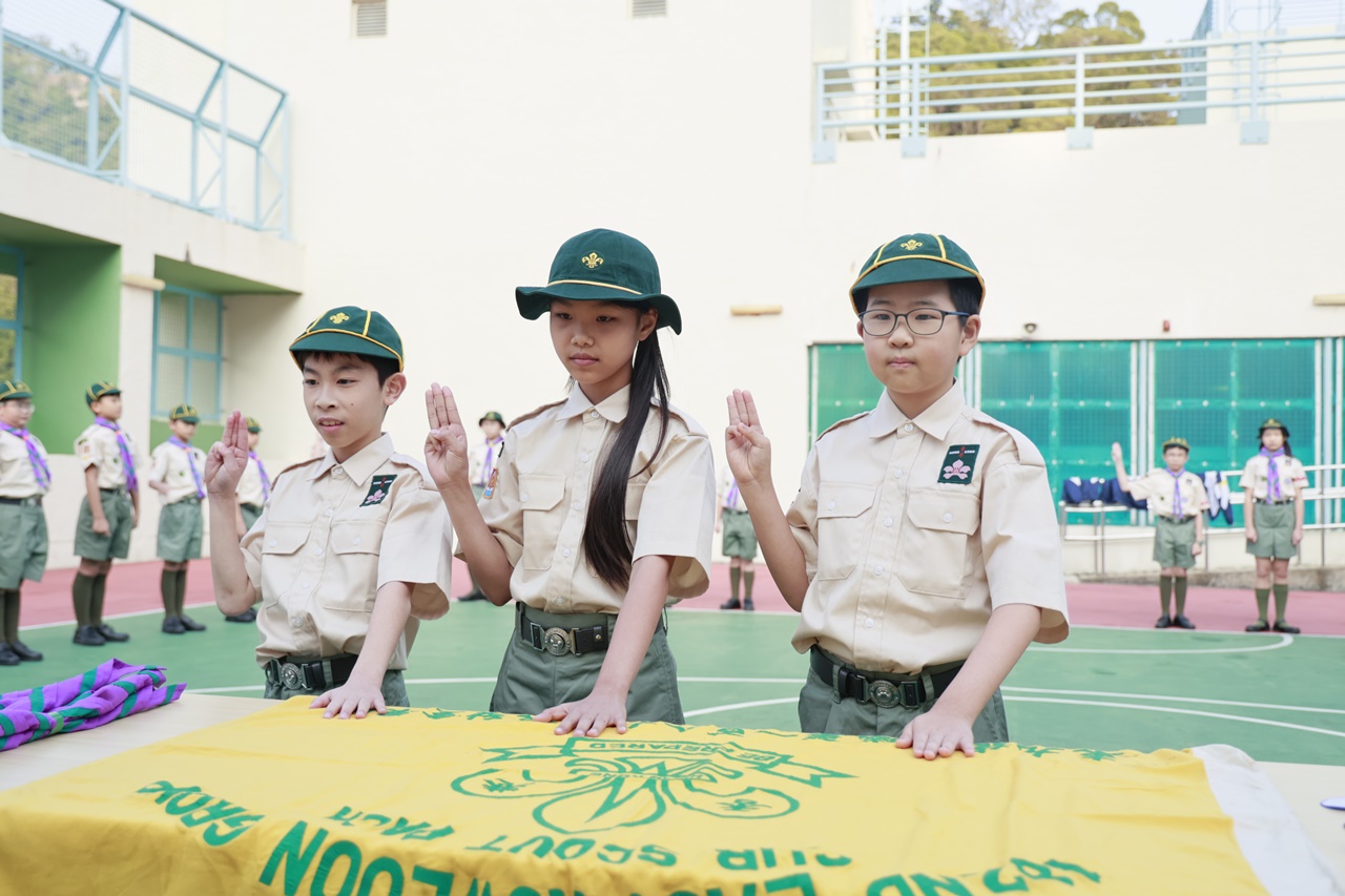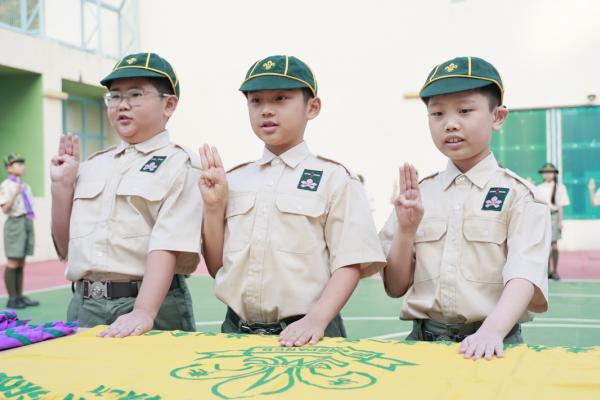 6位精神抖擻的幼童軍新成員在邱校長、領袖的帶領及各隊員的見證下,正式宣誓成為本旅團的一份子。期望他們能成為一個有自立能力、樂於助人、有責任感及勇於承擔的人。