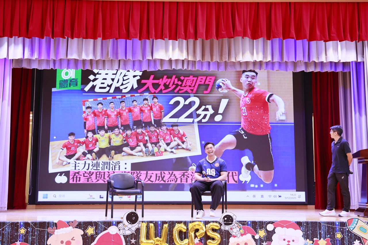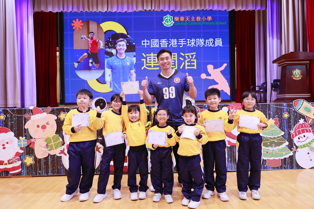 2025年12月9日,本校舉辦了一場別具意義的生涯規劃活動——「我們的校友:中國香港手球隊成員連潤滔分享講座」。當日下午,全校一至六年級同學齊聚禮堂,熱烈歡迎校友連潤滔先生重返母校。連潤滔早前代表中國香港手球隊出戰全運會,勇奪第四名,創下歷史佳績,其拼搏表現贏盡掌聲,是樂天大家庭的驕傲。