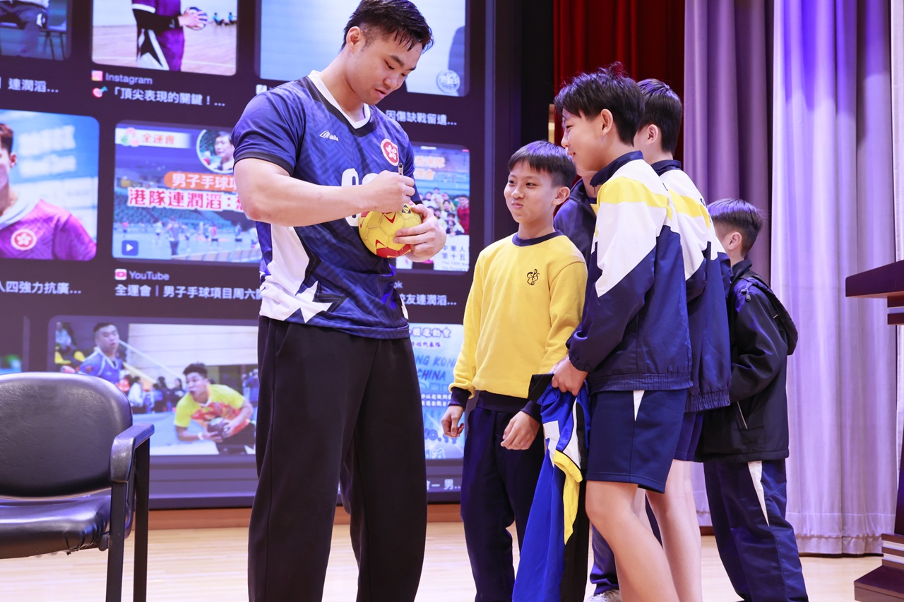 講座中,連潤滔以親切的方式與學弟學妹分享了他從樂天校園走到國際賽場的心路歷程,講述手球運動如何鍛鍊速度、力量與智慧,並分享了運動員背後的汗水與堅持。同學們全神貫注地聆聽,對這位「大師兄」的奮鬥故事深受感動,現場氣氛熱烈而溫馨。是次分享不僅讓學生認識了手球運動,更在他們心中埋下了勇敢追夢的種子。感謝連潤滔校友的無私分享,願同學們能以他為榜樣,學習他在逆境中不輕言放棄的精神,在未來的人生道路上無懼挑戰,努力向目標邁進。