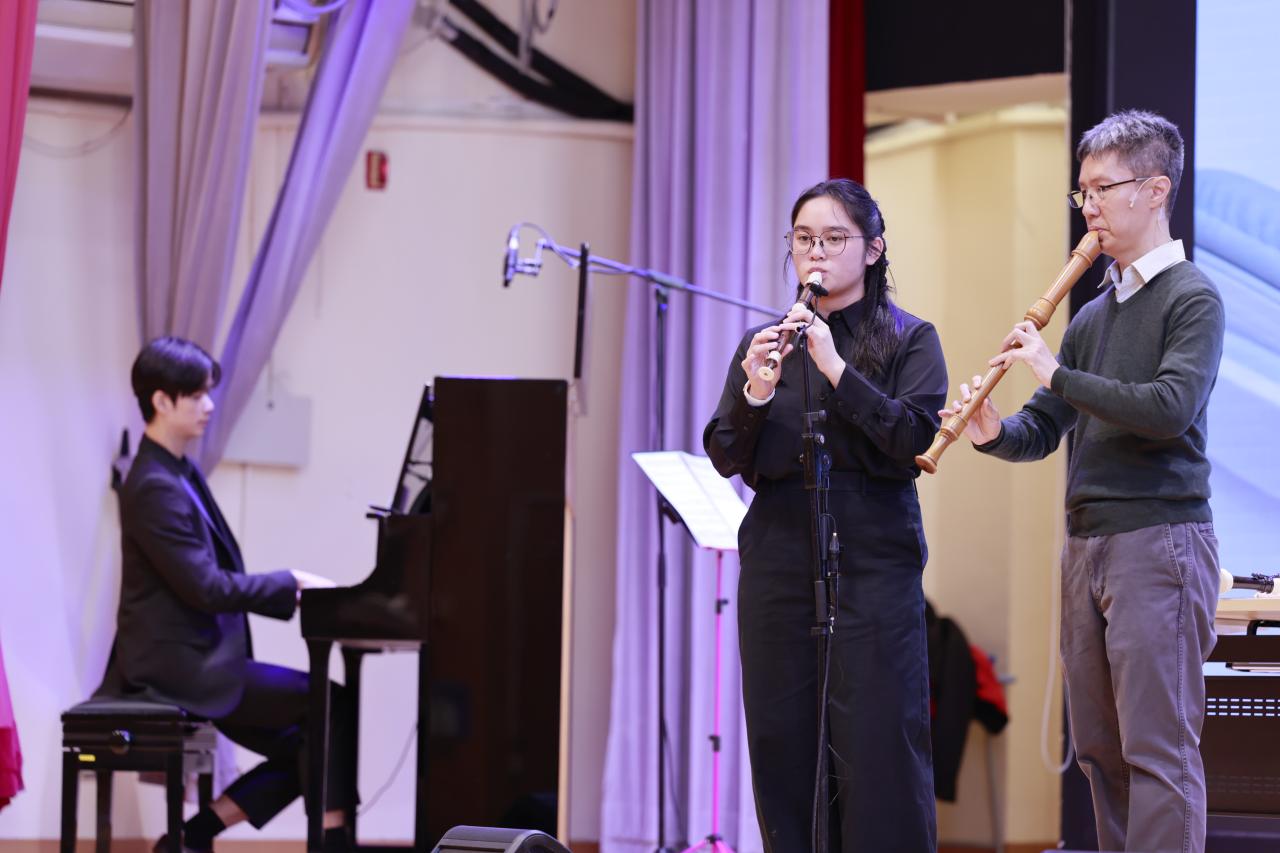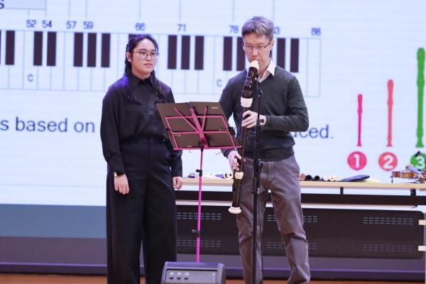 We were honored to have the Music Team from The Education University of Hong Kong (EdUHK) and renowned recorder player Mr. Lau Sze-chung with us. Mr. Lau not only performed beautifully but also introduced students to various types of recorders and their unique timbres. From the high, crisp notes to the deep, mellow tones, the diverse range of sounds fascinated the audience, deepening their appreciation for the instrument family. Following this, the EdUHK Music Team guided students through interactive listening activities, where everyone engaged deeply with the music.