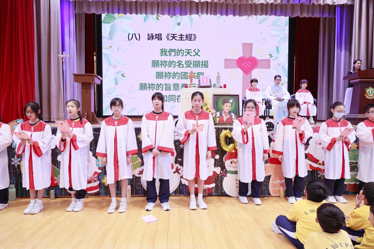 本年度的聖誕祈禱聚會中展現了基督小先鋒和歌詠小組合作演出的福音劇,重溫耶穌誕生的故事,又講述了真福卡洛以身作則教導學生以愛還愛,向近人表達關懷和愛的行動。全體教職員、學生和家長投入參與其中,營造出濃厚的節日氣氛。校董羅敬業神父擔任祈禱聚會神師,分享了聖誕的真正意義,鼓勵大家在此佳節中反思愛與希望的重要性。透過聚會中生動的劇情演繹,學生們不僅了解了聖誕故事的背景,也體會到團結與奉獻的精神。此次祈禱聚會讓每位參與者在心中點燃了對未來的希望與祝福。