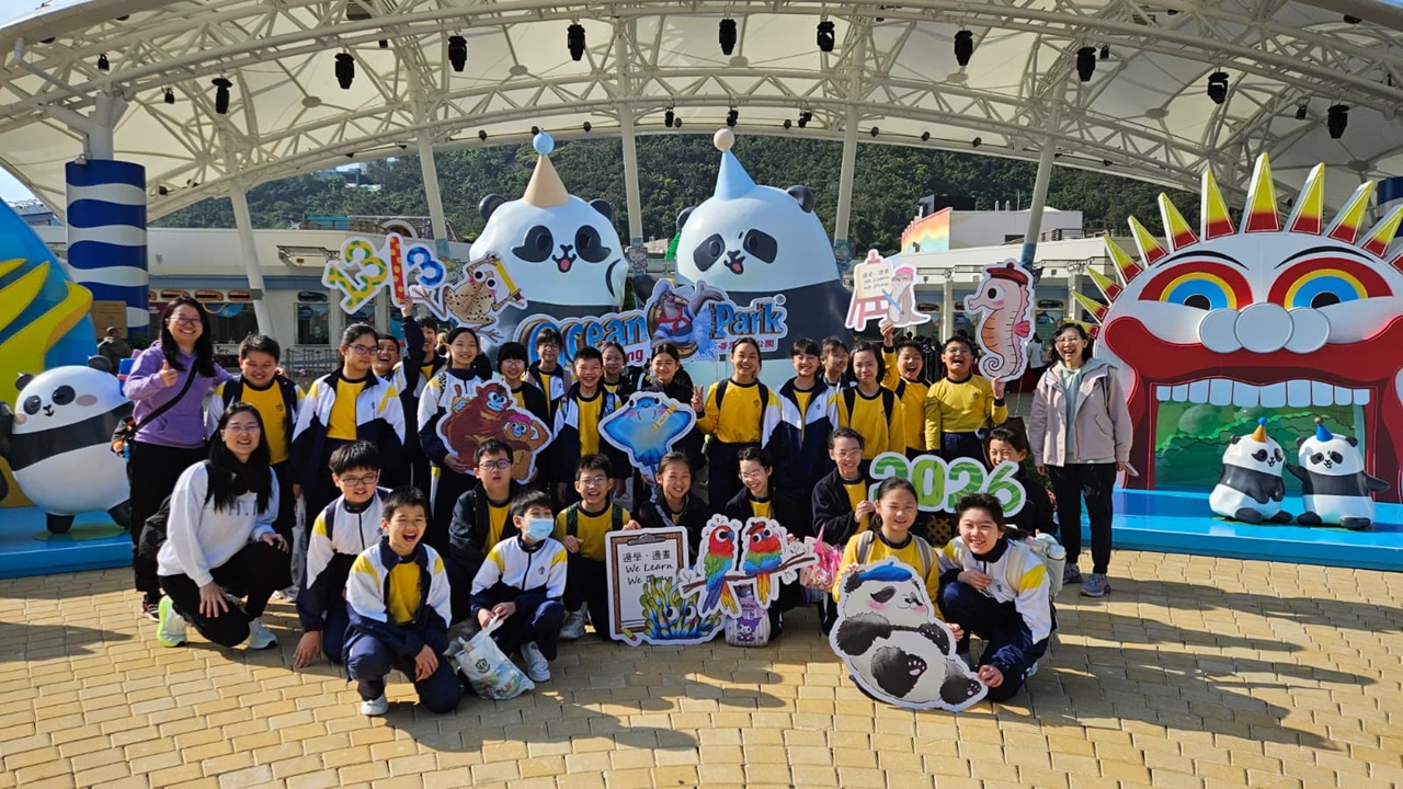 2026-03-13 為讓學生透過觀察及探索不同動物的特徵、行為與生活習慣,提升學生對《4Rs精神健康約章》中的休息、放鬆、人際關係和抗逆力的認識,了解身心健康的重要性。本校安排部分五年級學生於3月13日到海洋公園參與由教育局教育心理服務舉辦的「動物探索」精神健康同樂日。學生能夠了解金剛鸚鵡及鵰鴞長期與護理員相處以建立互信關係,並分享自己的抗逆心得。學生更參觀「大熊貓之旅」與雙胞胎加加得得及盈盈樂樂見面呢!