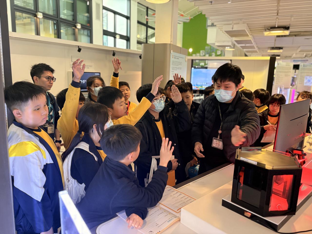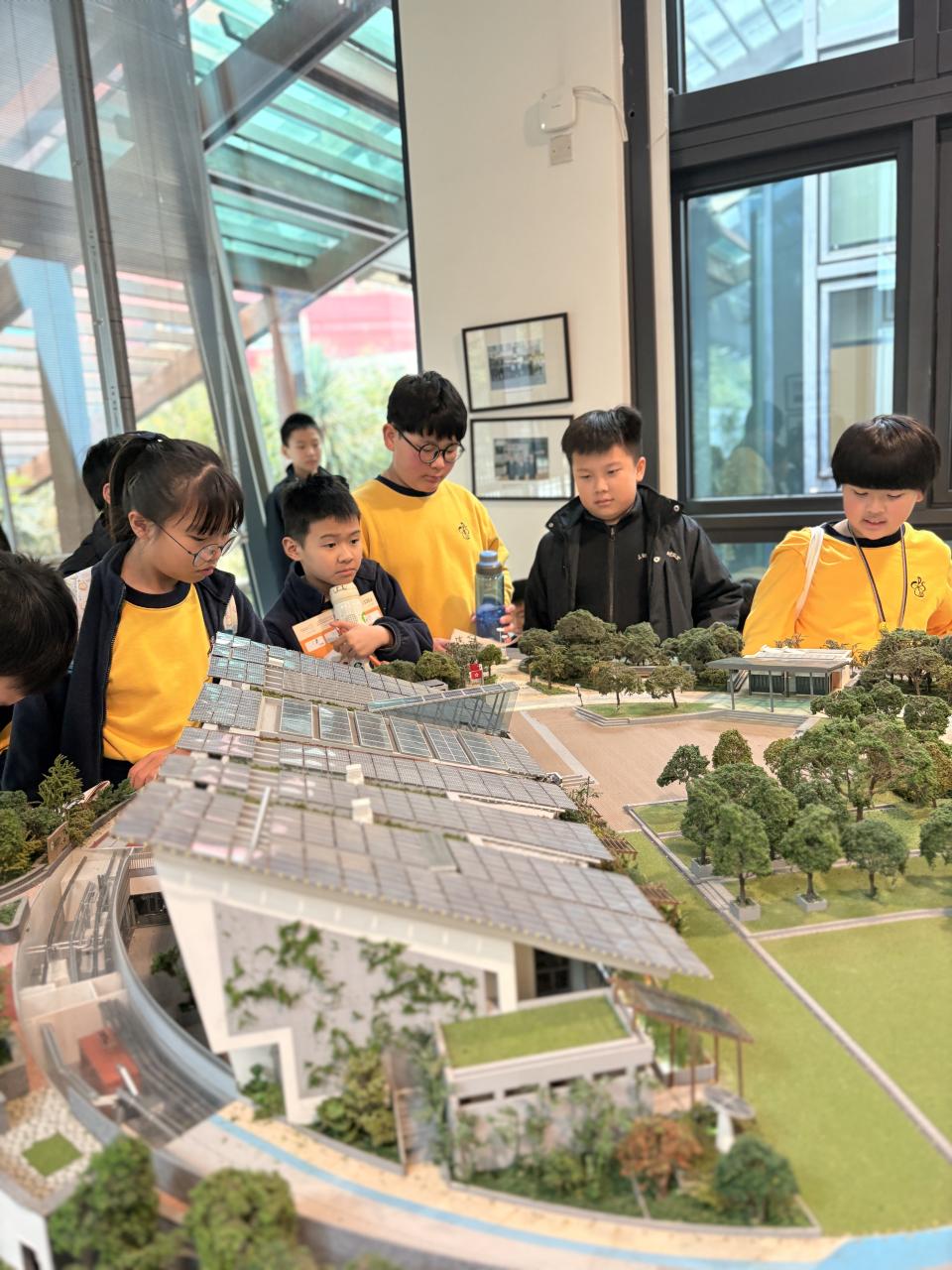 活動當天,學生們化身「環保小先鋒」,在專業導賞員的帶領下深入了解綠色建築的概念。同學們對場內展示的太陽能板模型、先進的智慧控制監察系統展現出濃厚興趣。透過近距離觀察環保建築模型,學生們更直觀地學習到如何利用科技減少碳排放。在互動環節中,大家專注聆聽並認真記錄所見所聞,積極探討可持續生活的方式。