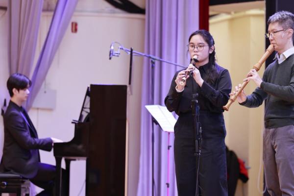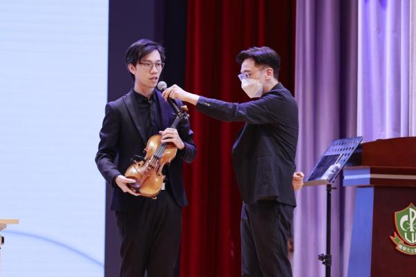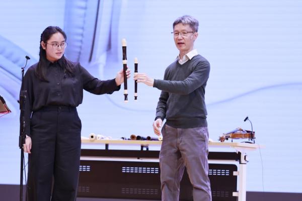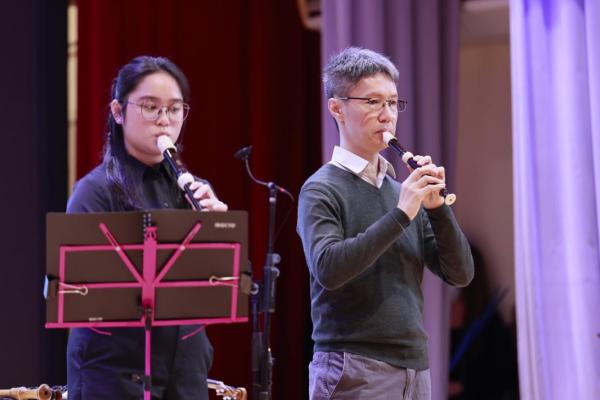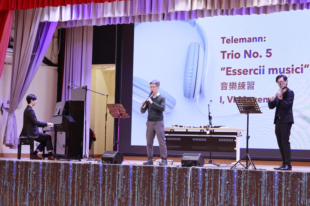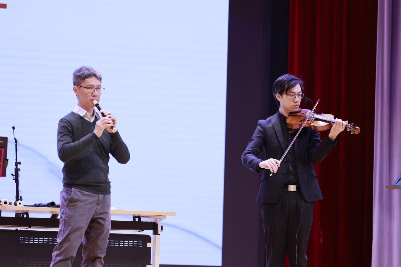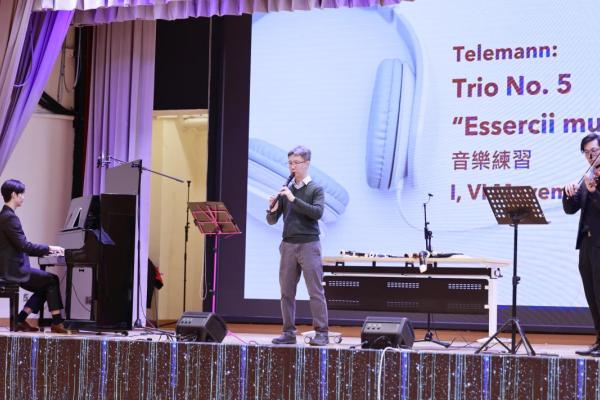 活動當日,我們榮幸邀請到香港教育大學音樂團隊及著名木笛音樂家劉思聰先生蒞臨。劉先生不僅帶來精彩的示範,更向同學展示了不同種類的木笛。從外型構造到音色的變化,劉先生深入淺出地介紹了木笛家族的獨特之處。當高亢清脆與低沉圓潤的笛聲交織迴盪於禮堂時,在場師生無不聽得入神,對這件樂器有了全新的認識與欣賞。隨後,香港教育大學音樂團隊帶領學生進行互動音樂體驗,引導同學們專注聆聽,在旋律中尋找共鳴。