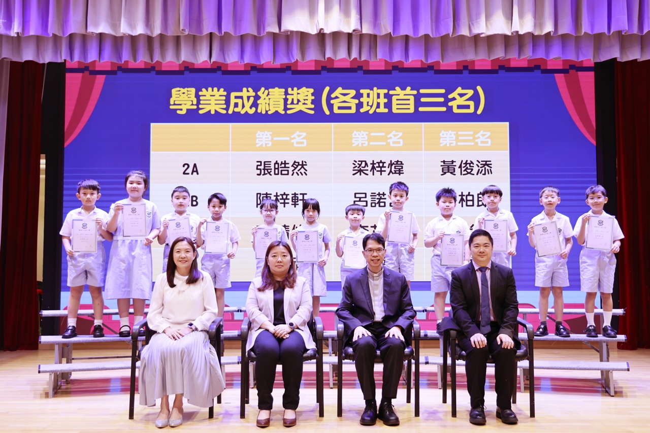 2026-04-24 本校於2026年4月24日(星期五)在禮堂舉行了第二學段頒獎禮。這是一個充滿喜悅與感恩的時刻,我們非常榮幸邀請到校董羅敬業神父及家長校董蕭麗芬女士擔任主禮嘉賓,與全校師生一同見證學生在學術與多元發展上的豐碩成果。這場頒獎禮不僅是對過去努力的肯定,更激勵了全校同學繼續追求卓越,在「樂天大家庭」中茁壯成長。衷心感謝嘉賓的蒞臨,以及家長們一直以來的支持與信任。