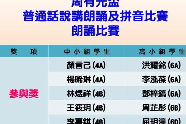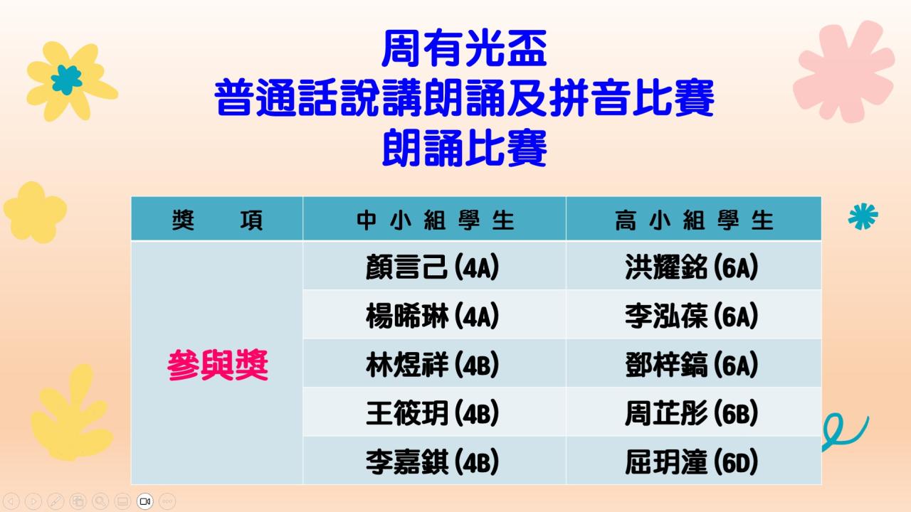 恭喜本校學生於「周有光盃普通話説講朗誦及拼音比賽」獲頒參與獎!