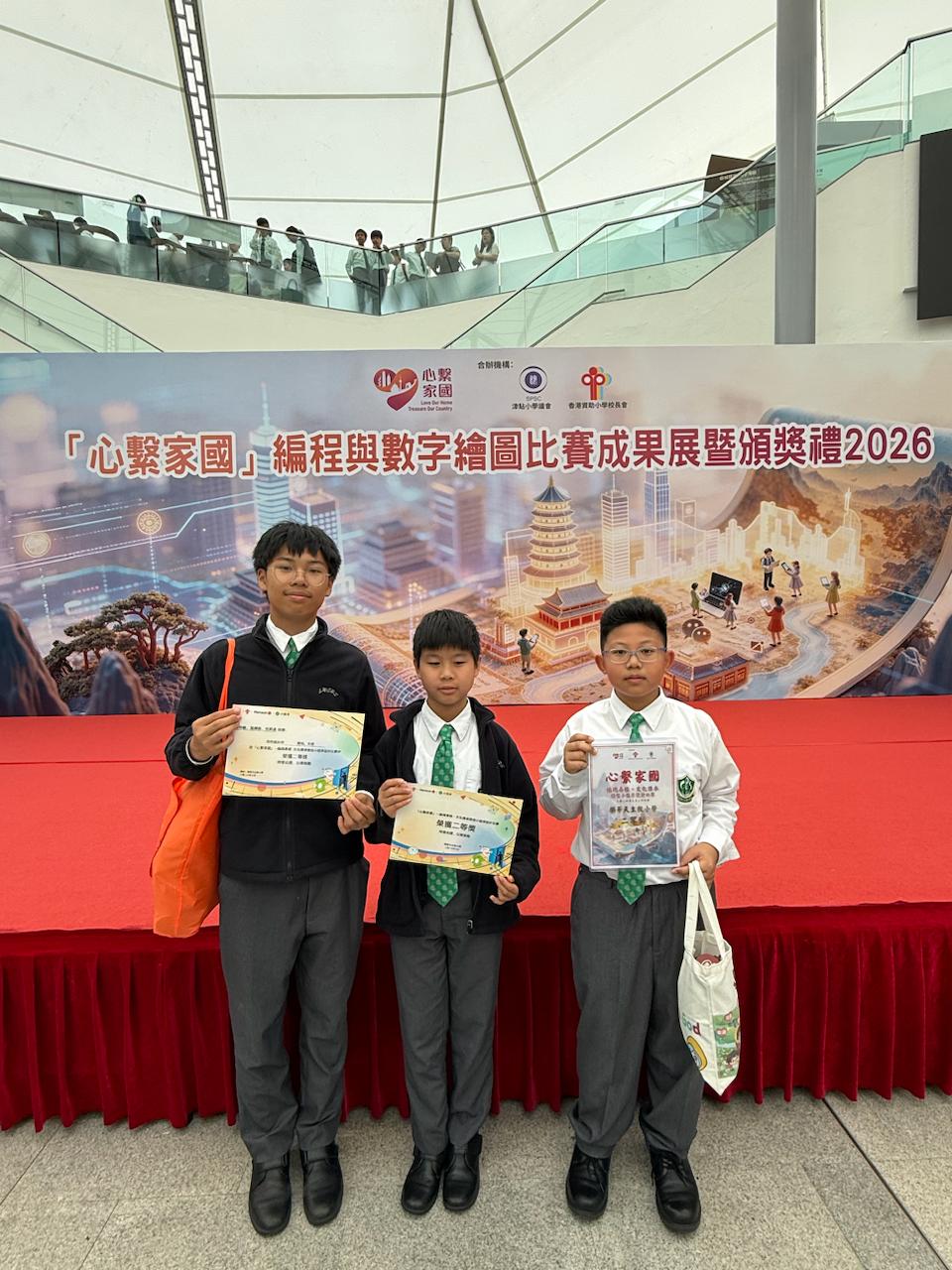 本校一直致力推動 STEAM 教育,鼓勵學生將創新科技結合中華文化。在2026年3月26日,本校 6A 班何昇遠、葉鏵鋯及楊明羲同學參加了「心繫家國—編碼尋根.文化傳承」微信小程序設計比賽,憑著卓越的表現及創意,在眾多參賽隊伍中脫穎而出,勇奪二等獎!