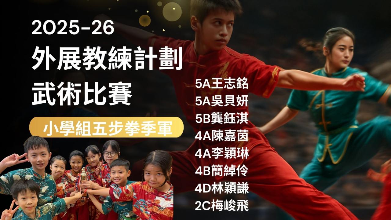 恭賀南拳校隊於「2025-26外展教練計劃—武術比賽」榮獲小學組五步拳季軍。