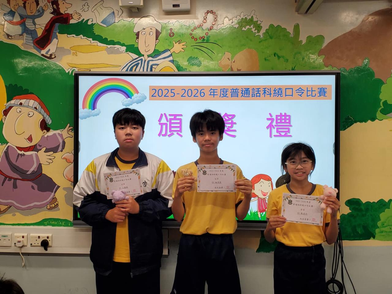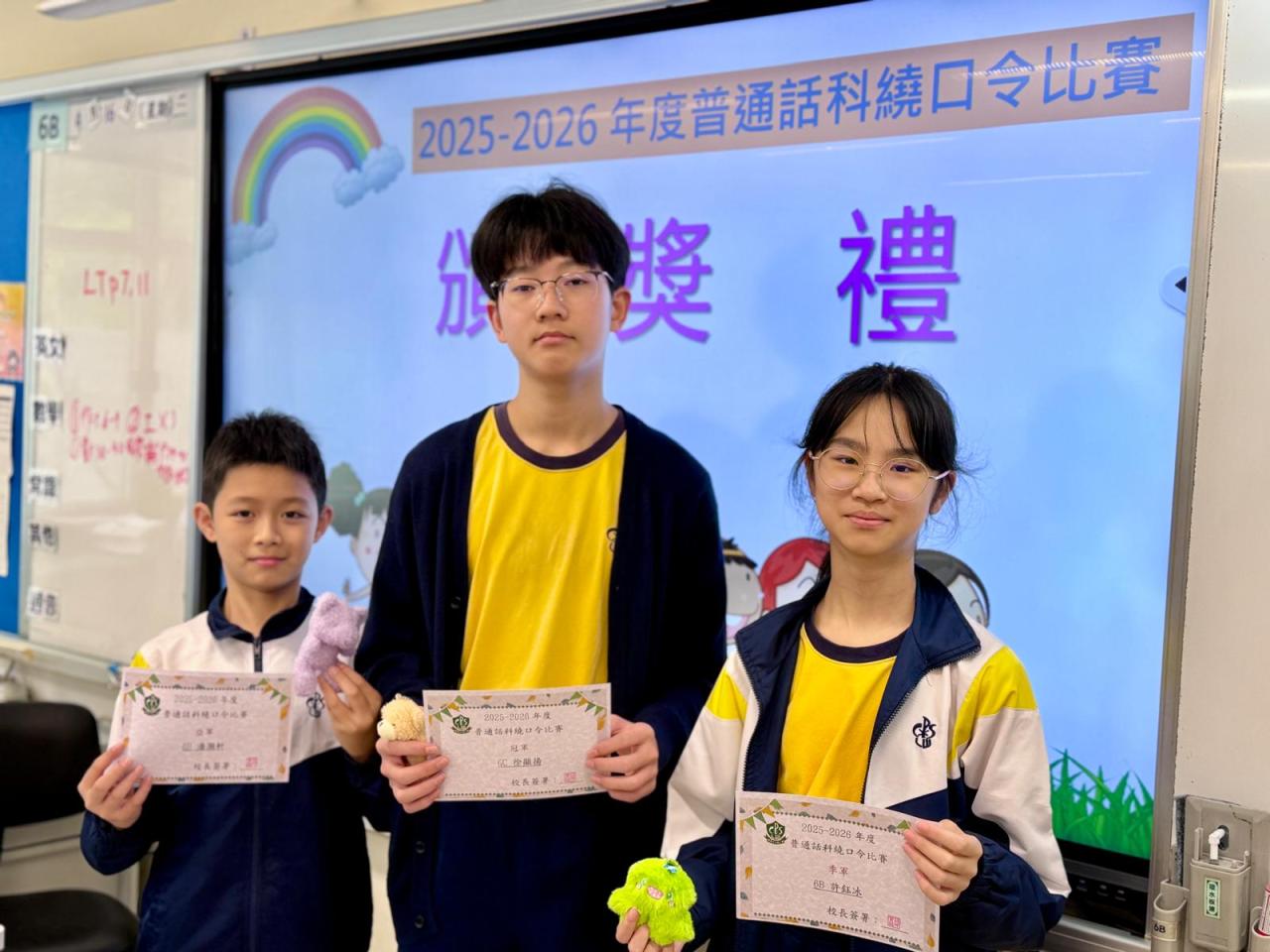 為增加學習普通話的趣味性,本校於1月28日至2月12日舉行隨堂「普通話繞口令比賽」。學生兩人一組互相比賽與記錄,在限時內挑戰精準發音與語速。課室氣氛熱烈,不少同學更即席表演,展現出色的語言潛能。恭喜所有獲獎同學,是次活動有效提升了大家的表達能力與學習熱情,讓校園洋溢着愉快的學習氣息。