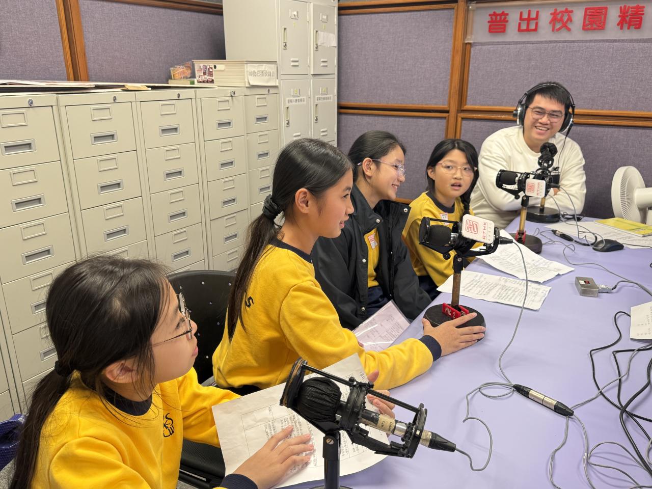 1月9日,樂天小主播出發啦!🚀 同學們走進香港電台,參與《普出校園精彩》節目錄製。戴上耳機,對着麥克風,親身體驗電台廣播的魅力!🎧