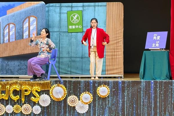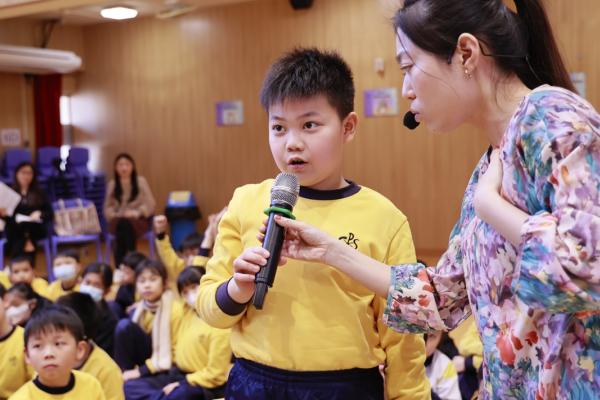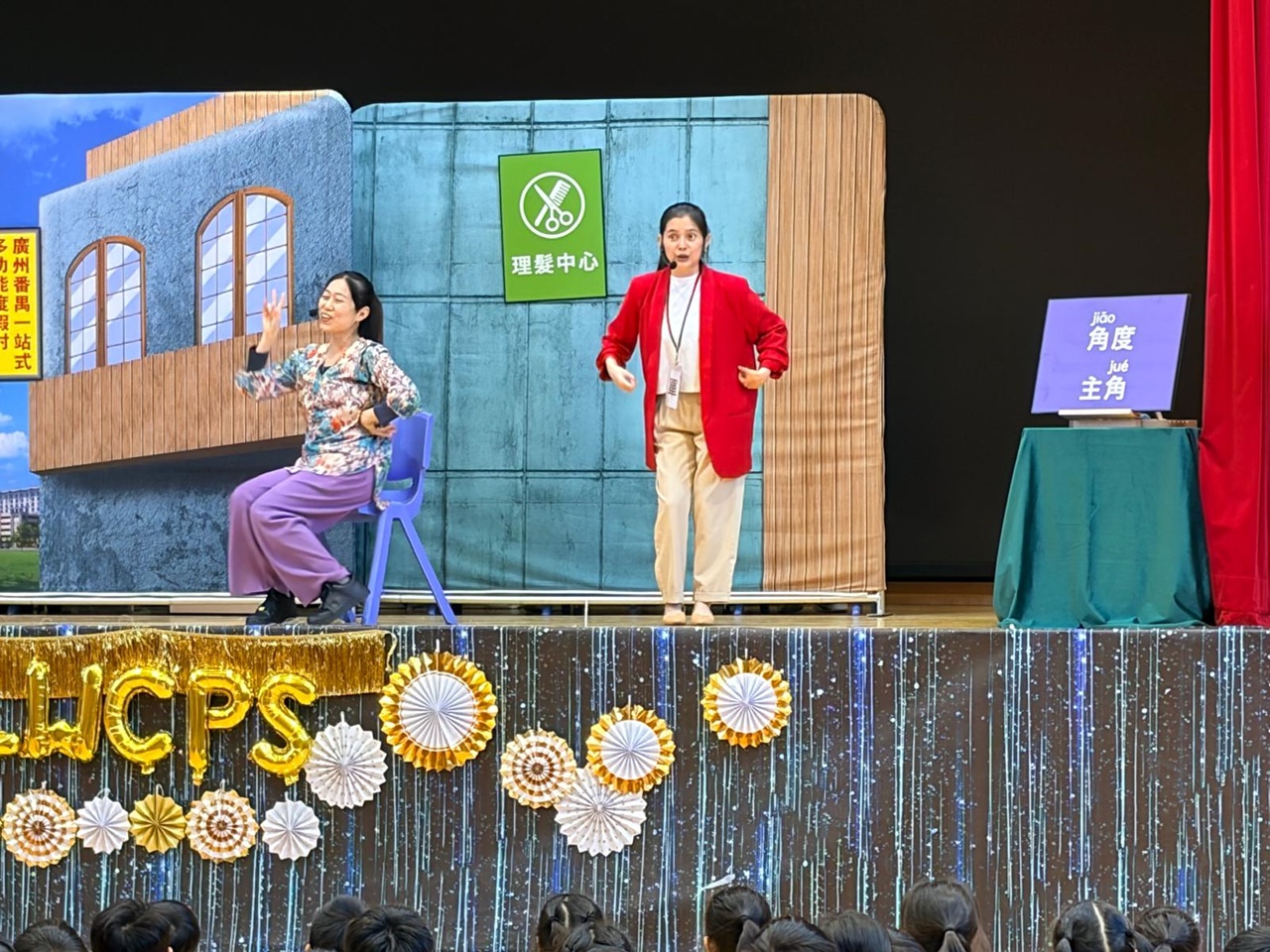 活動當日,專業演員以流利的普通話及惹笑的肢體語言,帶領學生進入一個發生在廣州番禺度假村的趣味故事。演出期間,學生們看得津津有味,全神貫注地跟隨演員學習普通話發音與詞彙。在互動環節中,同學們更踴躍舉手,在舞台上展現出學習語言的自信,現場氣氛非常熱烈。
