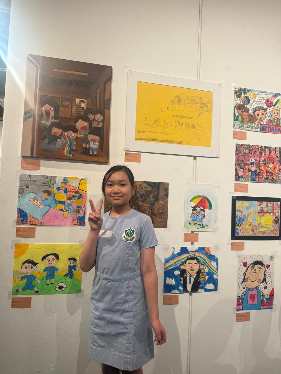 2025-05-21 恭賀6B 劉心賢同學於教育局舉辦的「學生視覺藝術作品展2025」榮獲金獎。作品《老師的日常2 》的靈感來自維拉斯奎茲的《宮女》,描繪了老師的日常生活,如遇到升降機壞了時的各種情況。 校外獎項