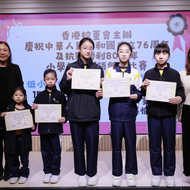 為配合國家推動愛國主義教育的重要方針,本校邱寶祺校長、陳志紅主任代表參加「抗戰勝利暨世界反法西斯戰爭勝利 80 周年」紀念活動,邱寶祺校長在「愛國主義教育協作夥伴計劃」啟動禮中,由教育局蔡若蓮局長JP頒發夥伴計劃獎座,以深化學校的愛國主義教育,培育學生的家國情懷為目標。