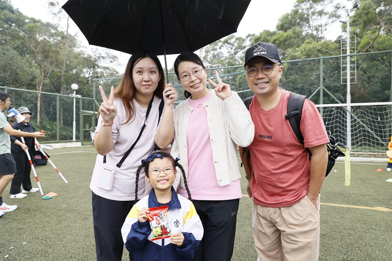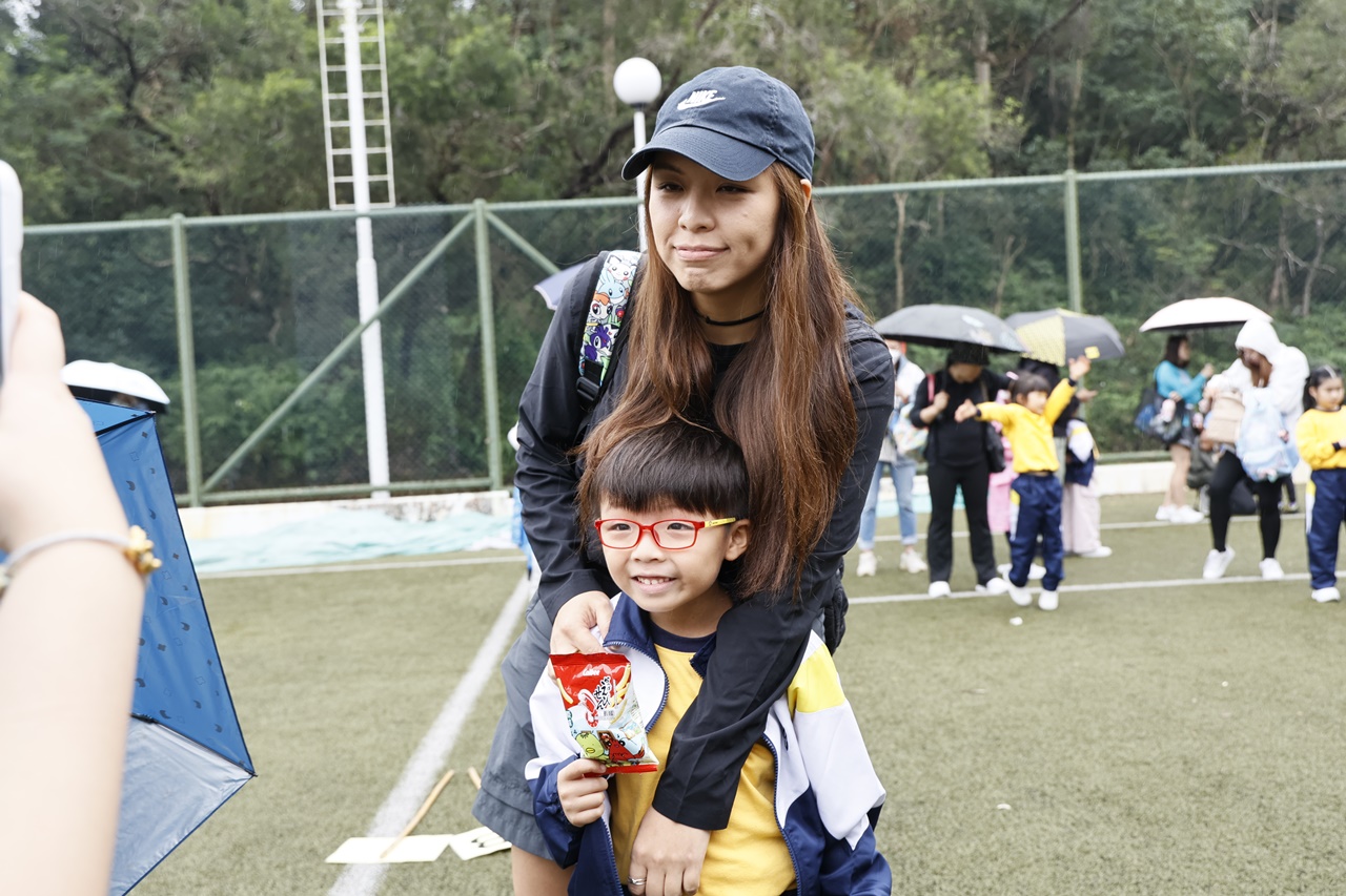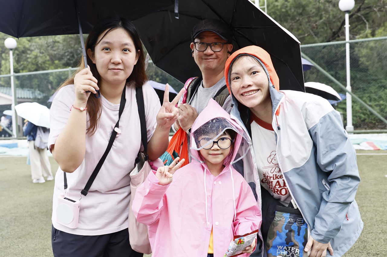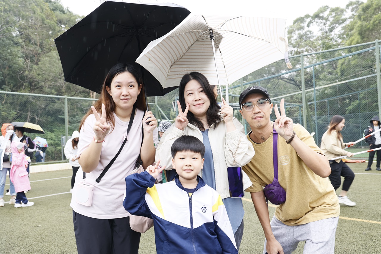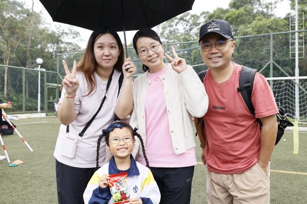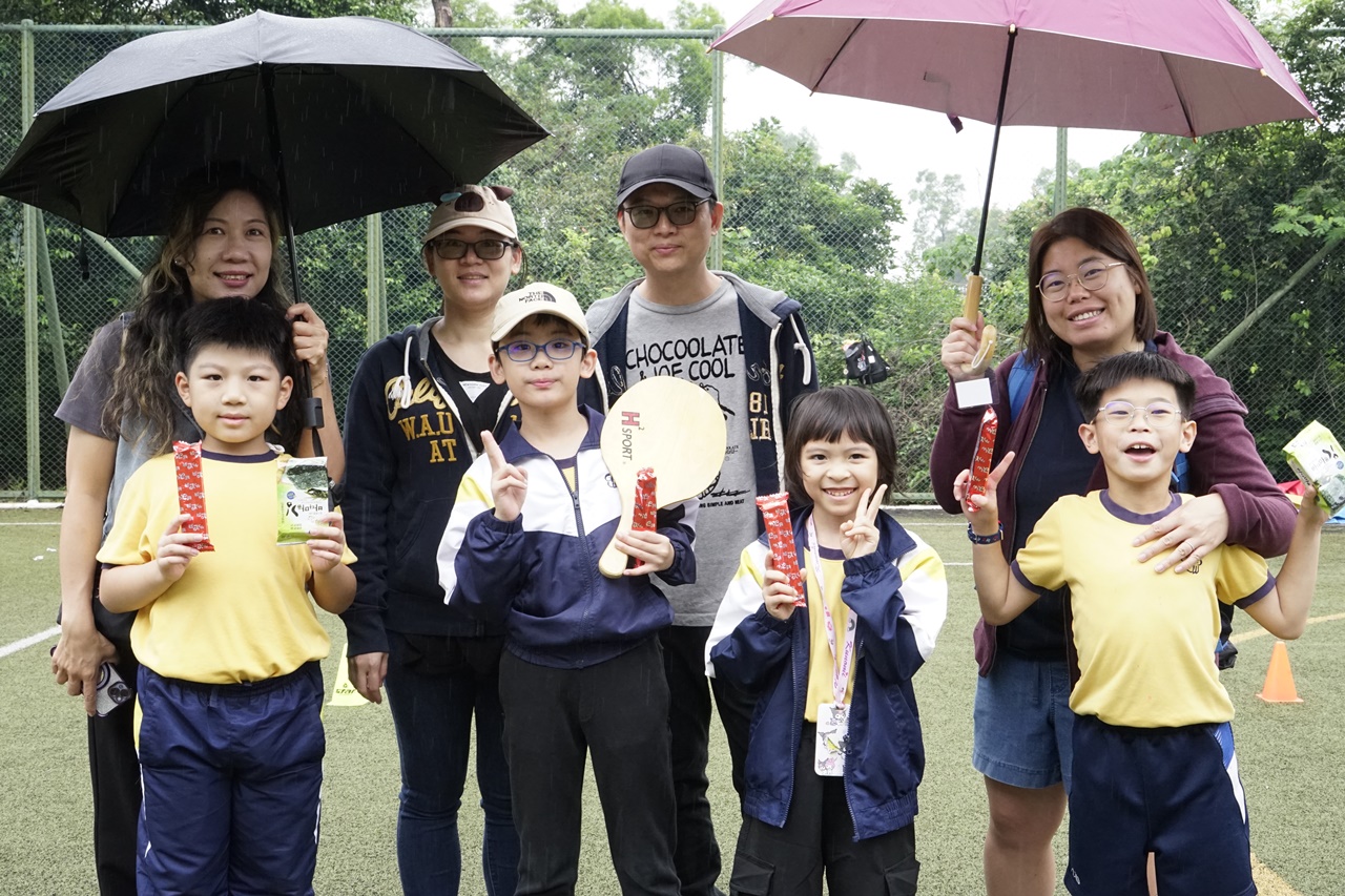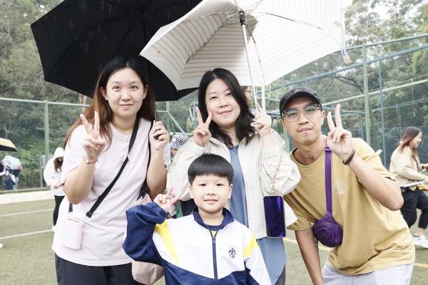 經過約一小時的車程便抵達大棠渡假村,每班首先來張大合照,凝住共聚於樂天旅行日的一刻。雖然天氣未如預期般晴朗,大合照後更開始下起陣陣微雨,但依然無阻一至三年級的同學和家人們參與親子遊戲的興致,享受共同合作爭標的過程,在心中留下美好的回憶。家長們更不忘與子女拍照,參加今年特設的親子攝影比賽。