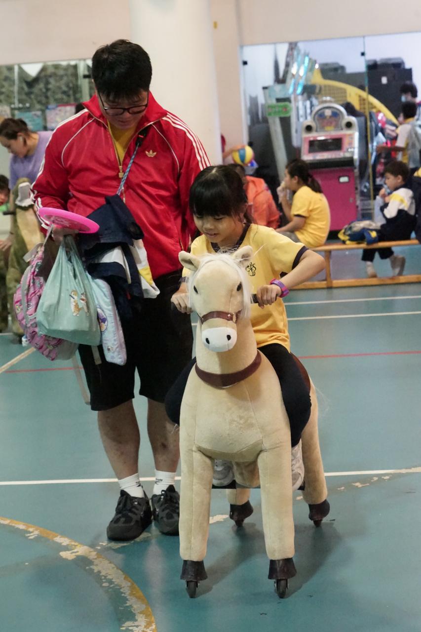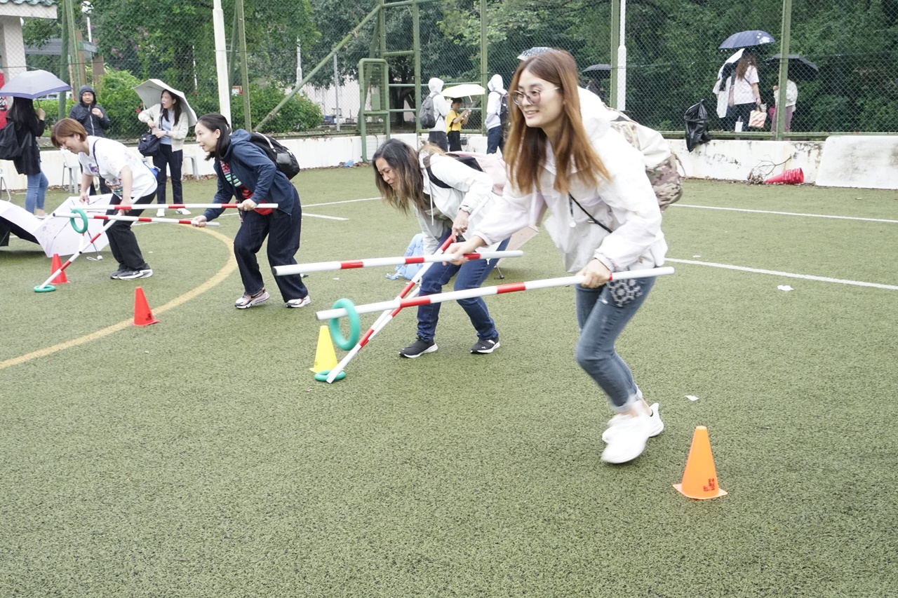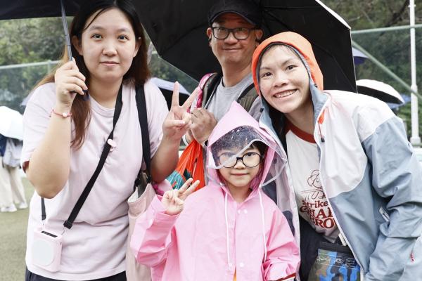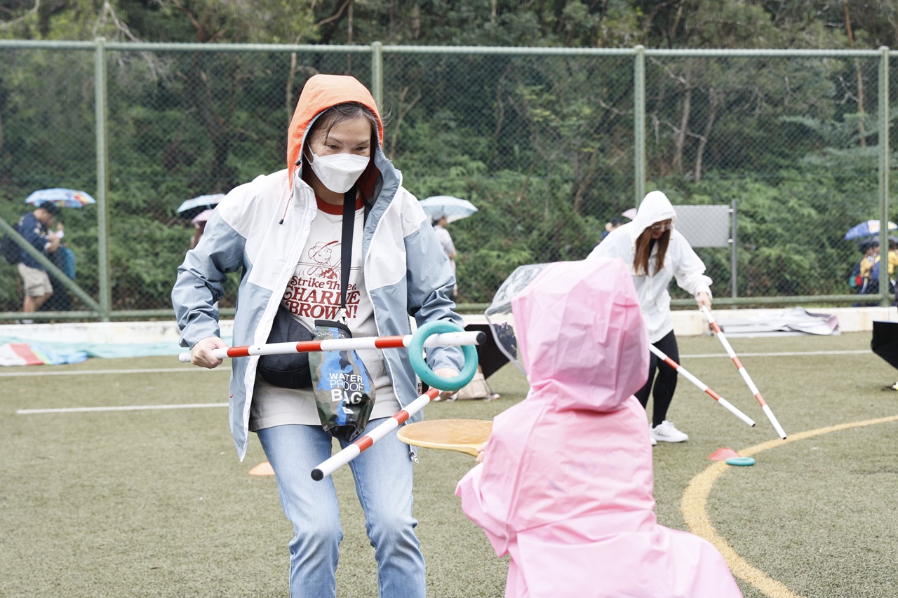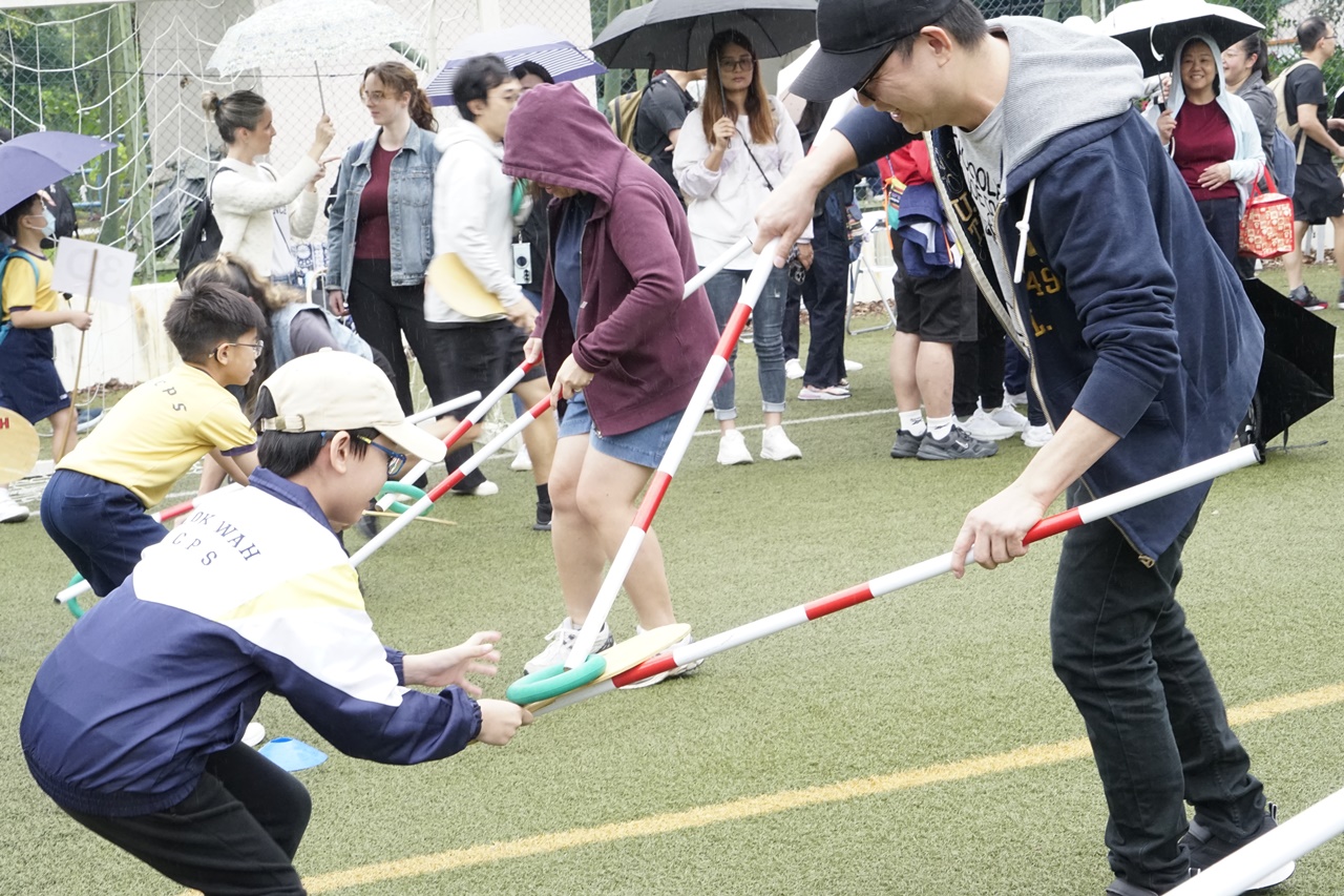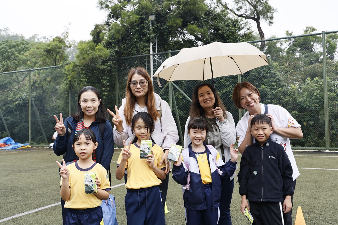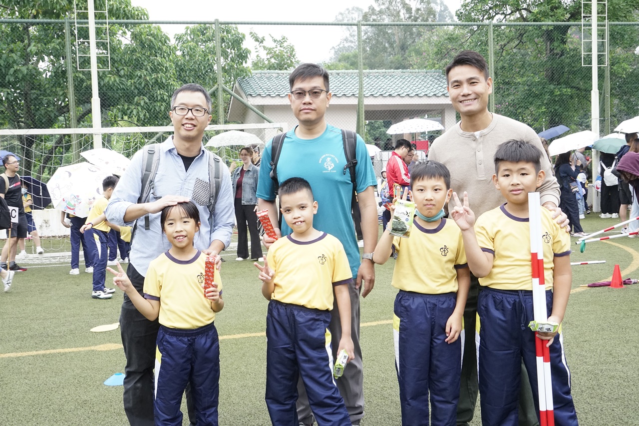 經過約一小時的車程便抵達大棠渡假村,每班首先來張大合照,凝住共聚於樂天旅行日的一刻。雖然天氣未如預期般晴朗,大合照後更開始下起陣陣微雨,但依然無阻一至三年級的同學和家人們參與親子遊戲的興致,享受共同合作爭標的過程,在心中留下美好的回憶。家長們更不忘與子女拍照,參加今年特設的親子攝影比賽。