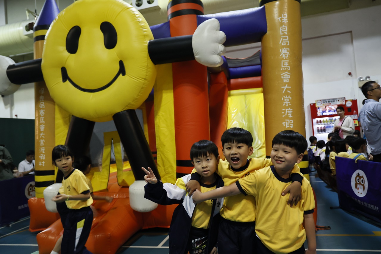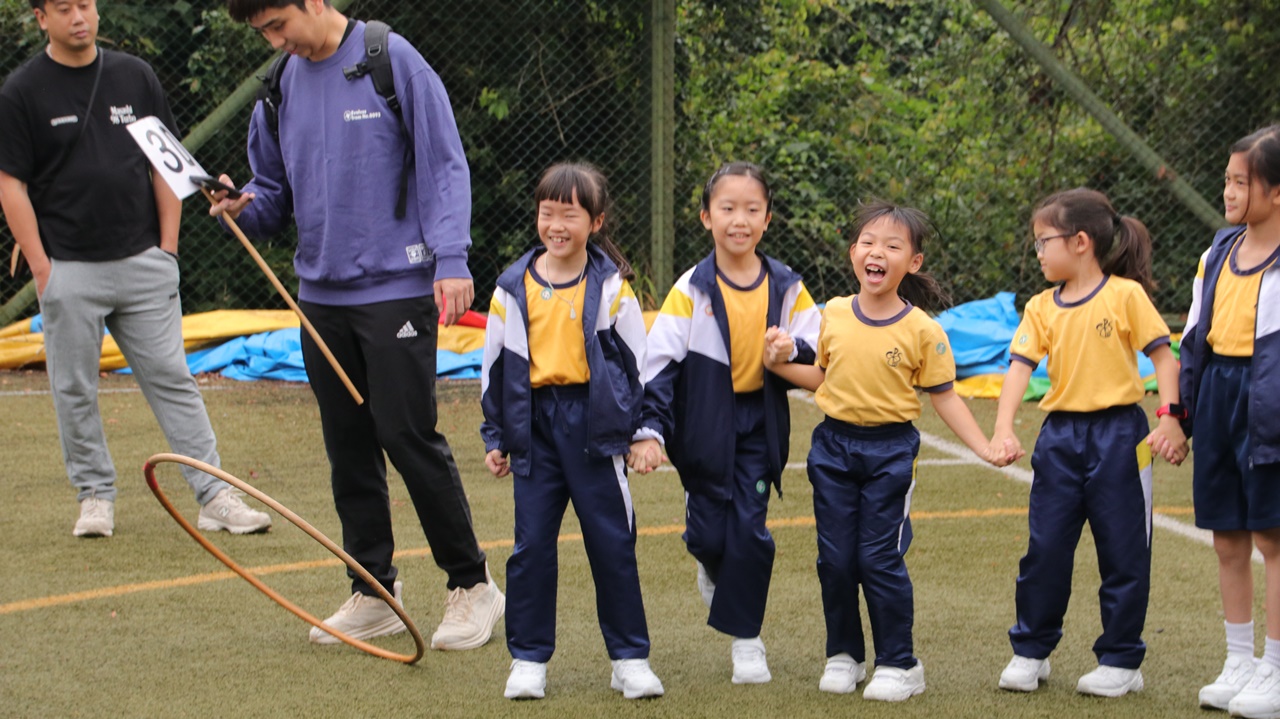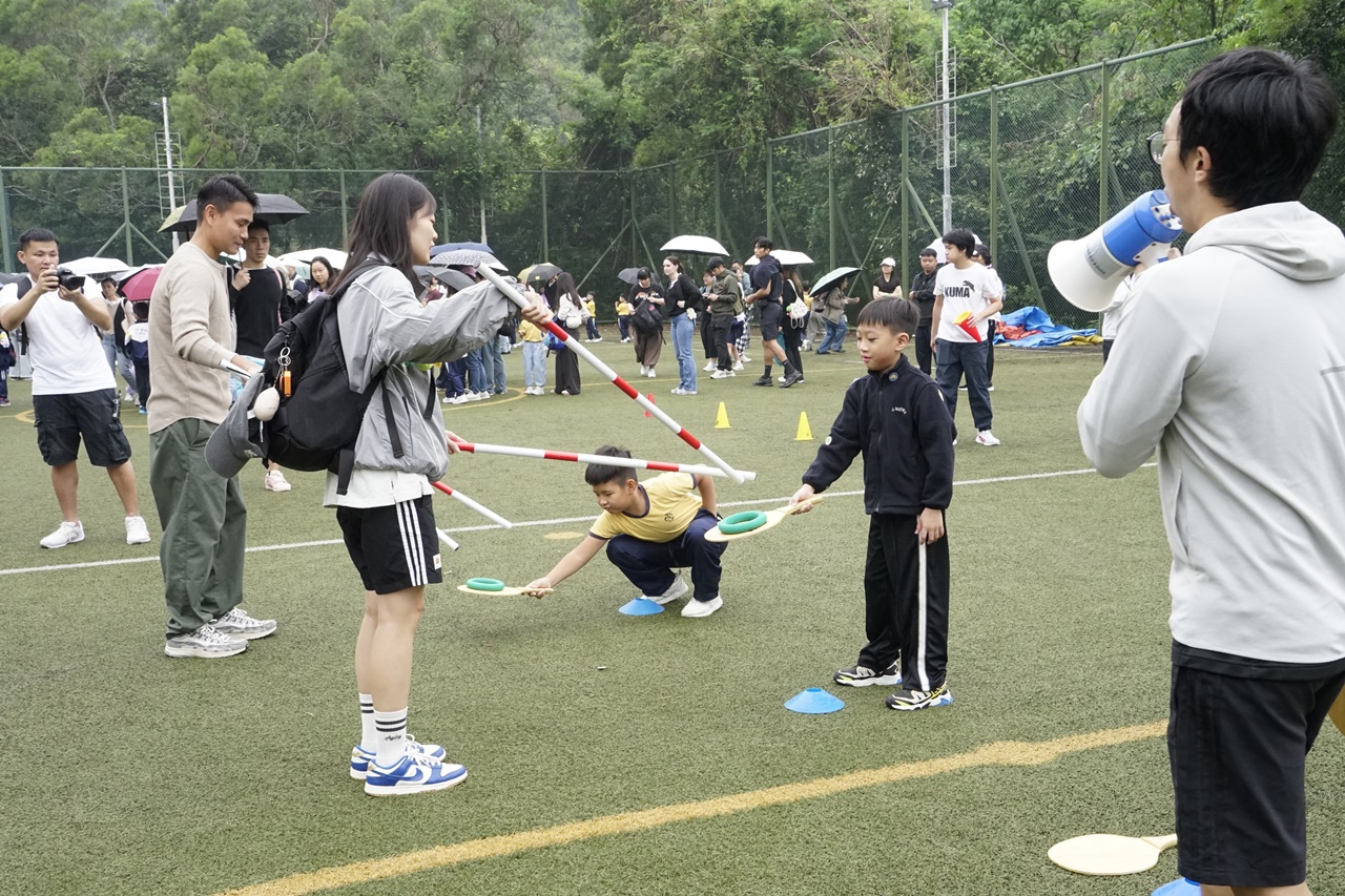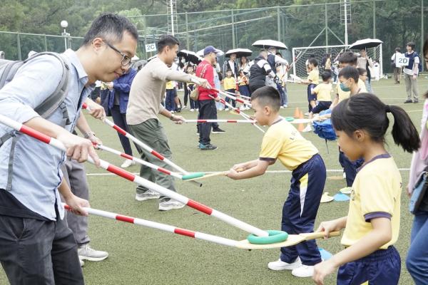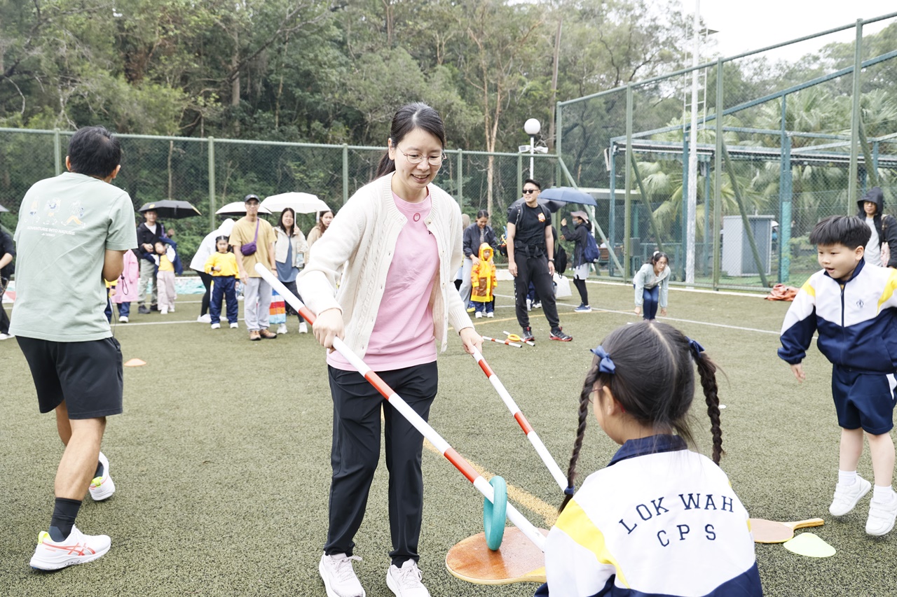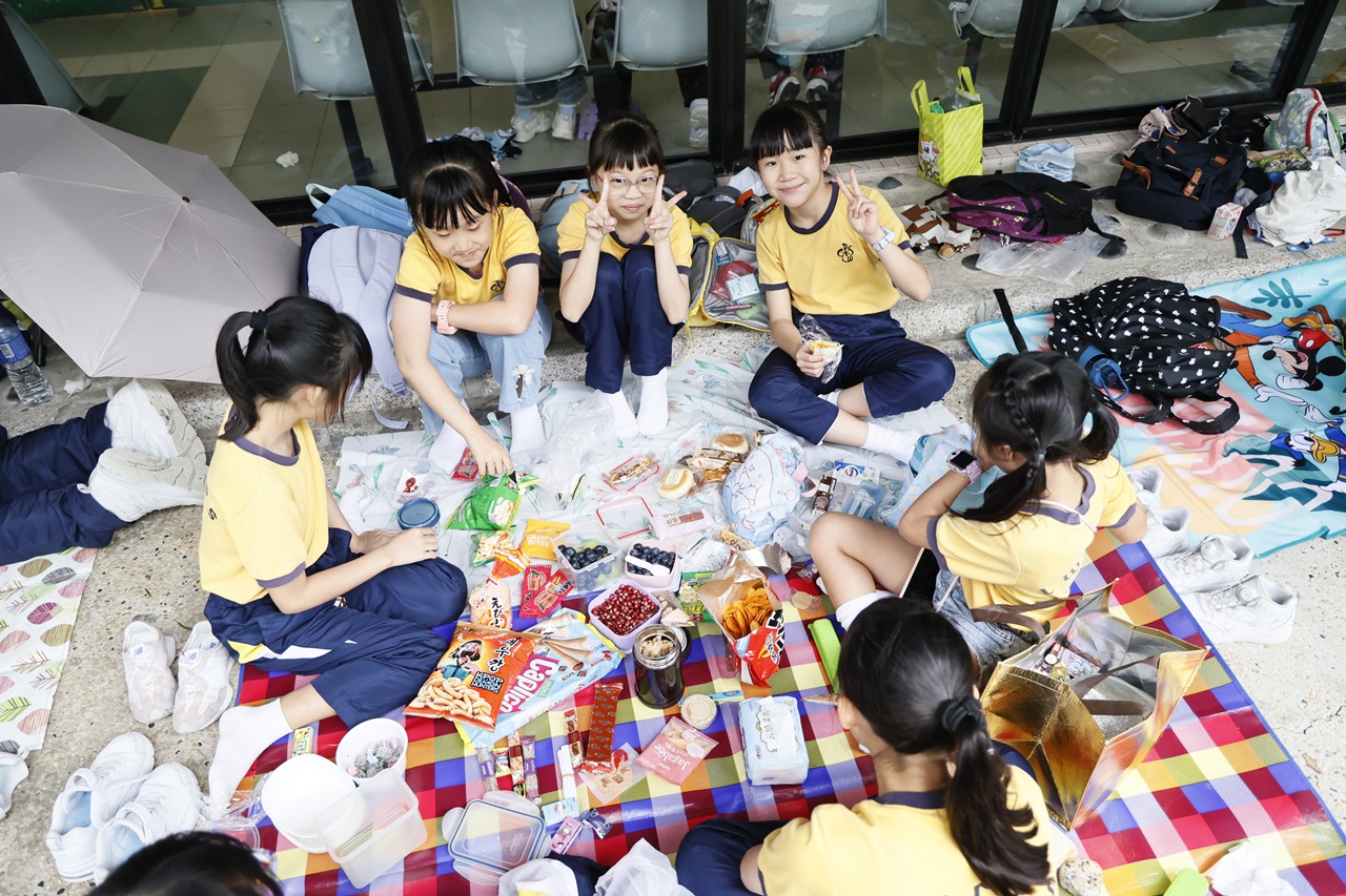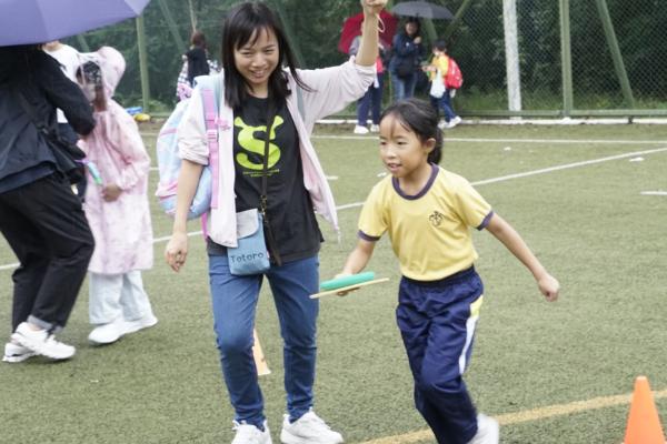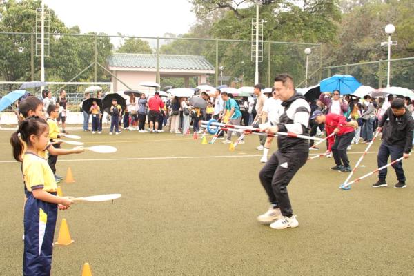 經過約一小時的車程便抵達大棠渡假村,每班首先來張大合照,凝住共聚於樂天旅行日的一刻。雖然天氣未如預期般晴朗,大合照後更開始下起陣陣微雨,但依然無阻一至三年級的同學和家人們參與親子遊戲的興致,享受共同合作爭標的過程,在心中留下美好的回憶。家長們更不忘與子女拍照,參加今年特設的親子攝影比賽。