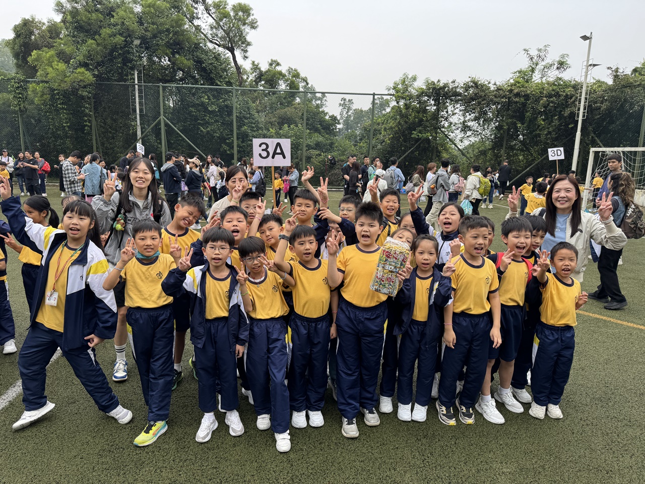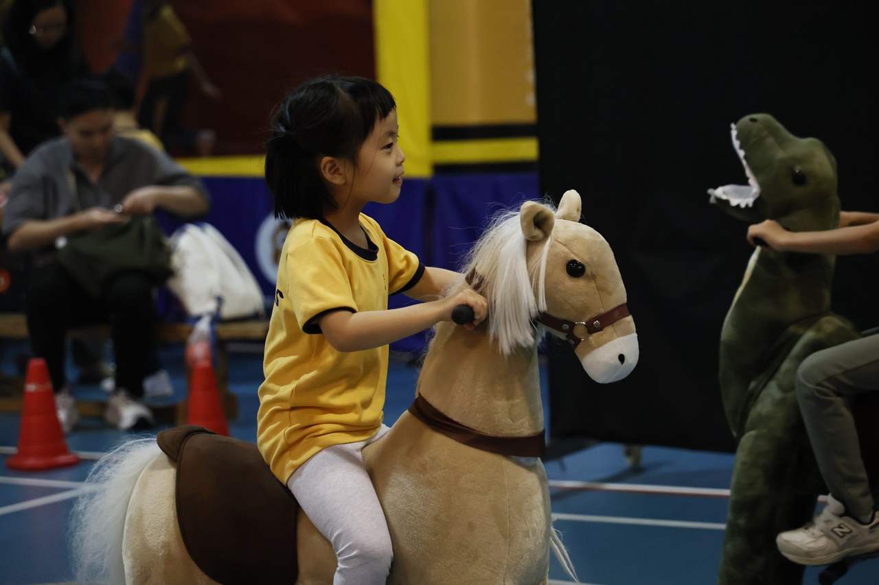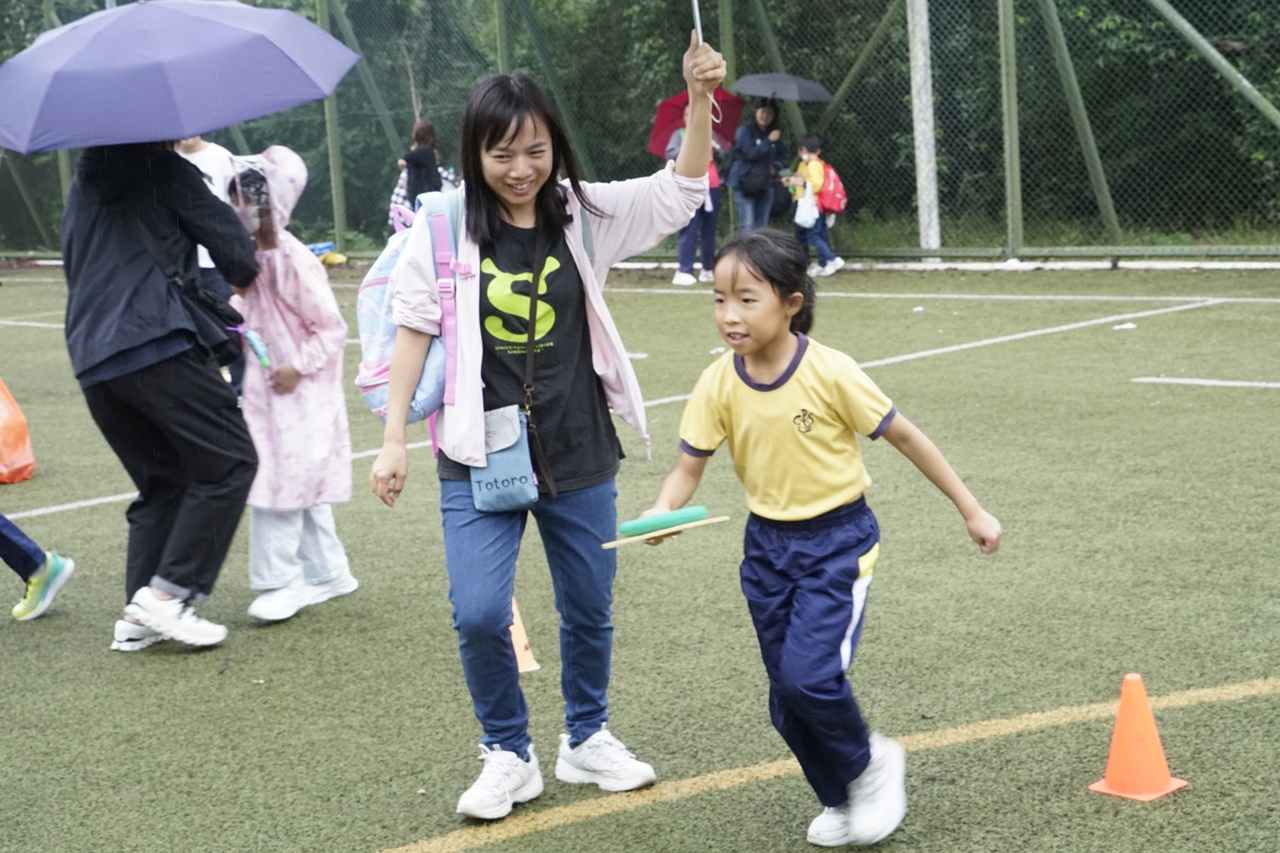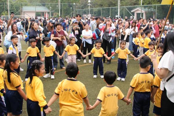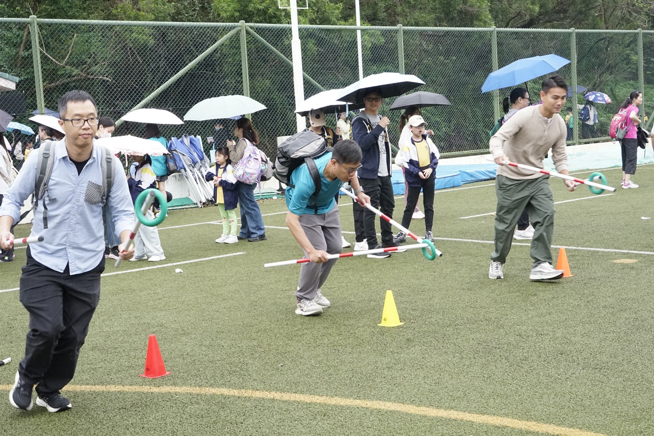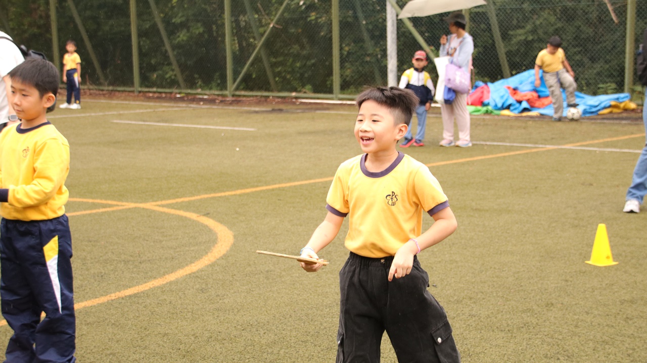 經過約一小時的車程便抵達大棠渡假村,每班首先來張大合照,凝住共聚於樂天旅行日的一刻。雖然天氣未如預期般晴朗,大合照後更開始下起陣陣微雨,但依然無阻一至三年級的同學和家人們參與親子遊戲的興致,享受共同合作爭標的過程,在心中留下美好的回憶。家長們更不忘與子女拍照,參加今年特設的親子攝影比賽。
