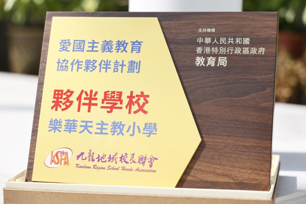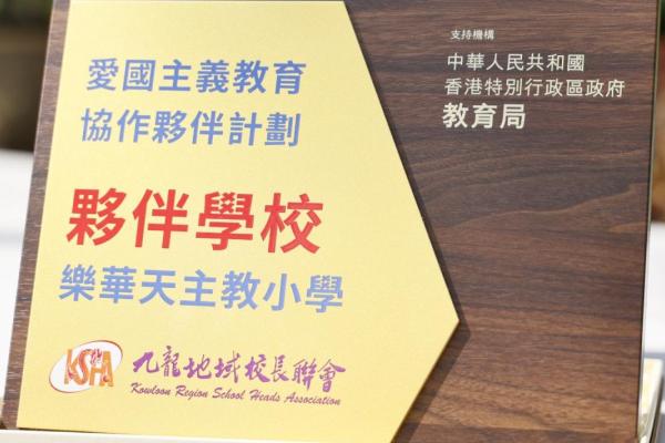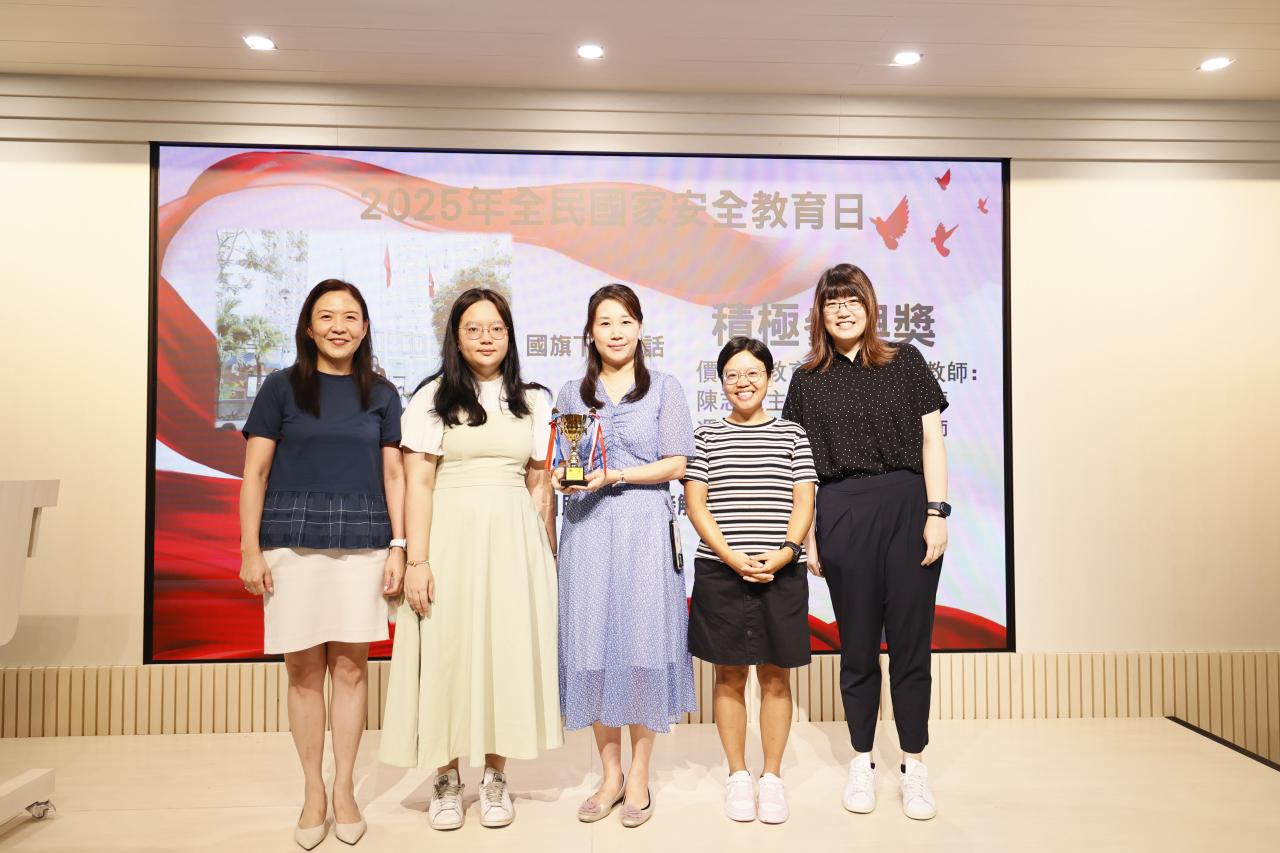 為配合國家推動愛國主義教育的重要方針,本校邱寶祺校長、陳志紅主任代表參加「抗戰勝利暨世界反法西斯戰爭勝利 80 周年」紀念活動,邱寶祺校長在「愛國主義教育協作夥伴計劃」啟動禮中,由教育局蔡若蓮局長JP頒發夥伴計劃獎座,以深化學校的愛國主義教育,培育學生的家國情懷為目標。
