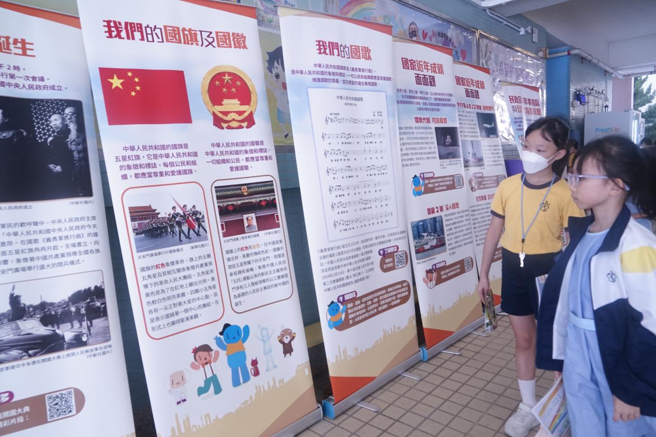為慶祝中華人民共和國成立七十六周年,本校全體師生於國慶日前夕一同進行升旗禮,隨着國旗緩緩升起,大家一起高唱國歌。及後,老師以國家的科技發展為題,為同學進行國旗下講話,勉勵學生為祖國的繁榮昌盛貢獻力量。最後,透過一起聆聽《保衛黃河》,讓學生體會到中國人民保家衛國的精神,並珍惜國家來之不易的和平。