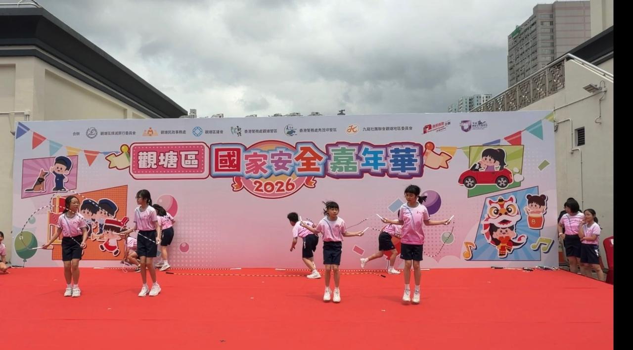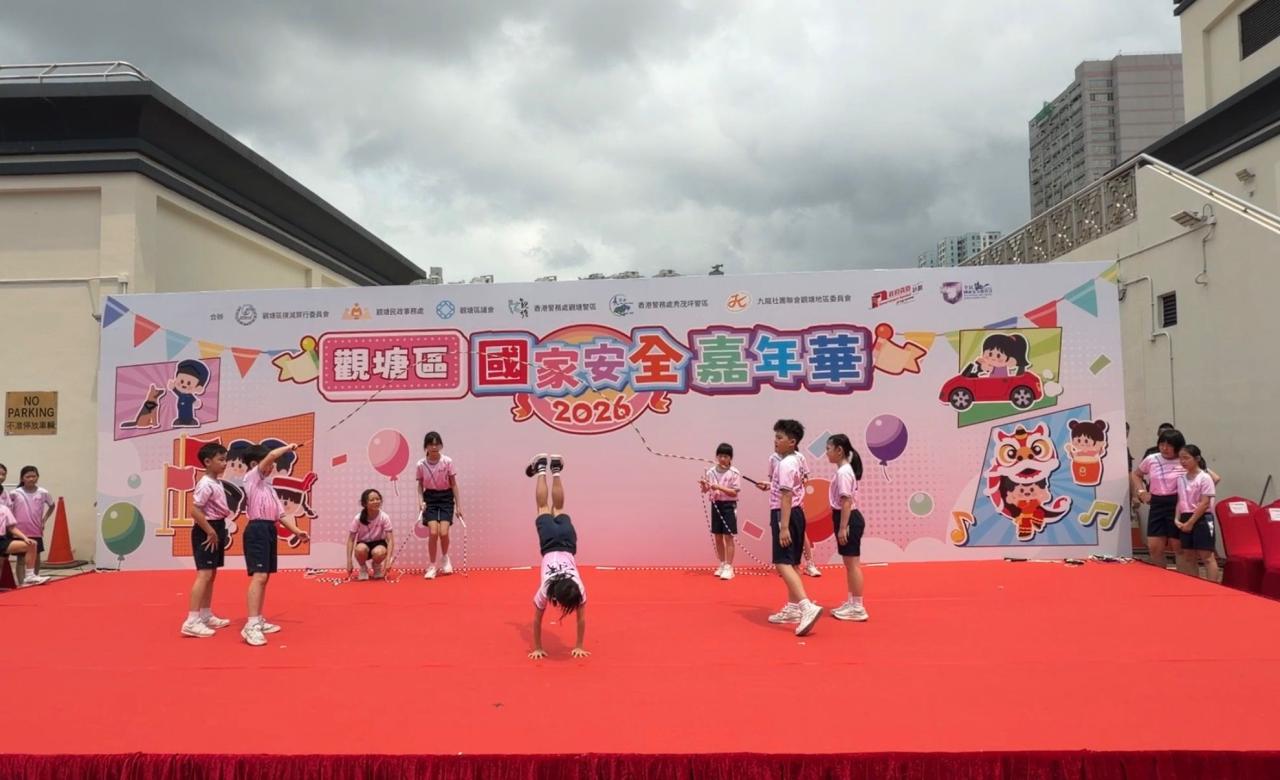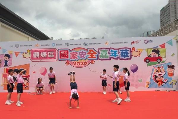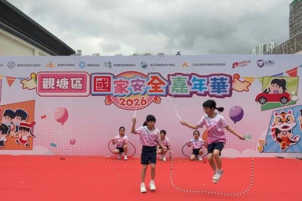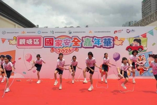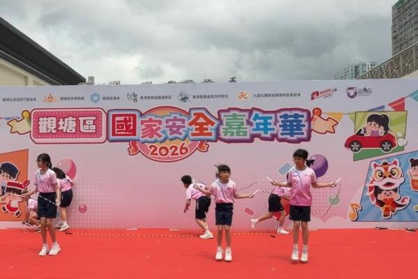 為慶祝國家安全教育日並向社區傳遞活力與正能量,本校花式跳繩隊隊員獲邀請於2026年4月12日(星期日)參加「觀塘區國家安全嘉年華」。是次活動意義非凡,本校邱校長亦親自到場支持,為隊員們加油打氣,與師生共同見證精彩時刻。