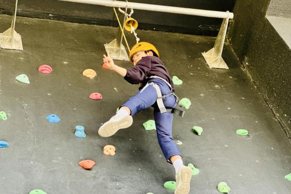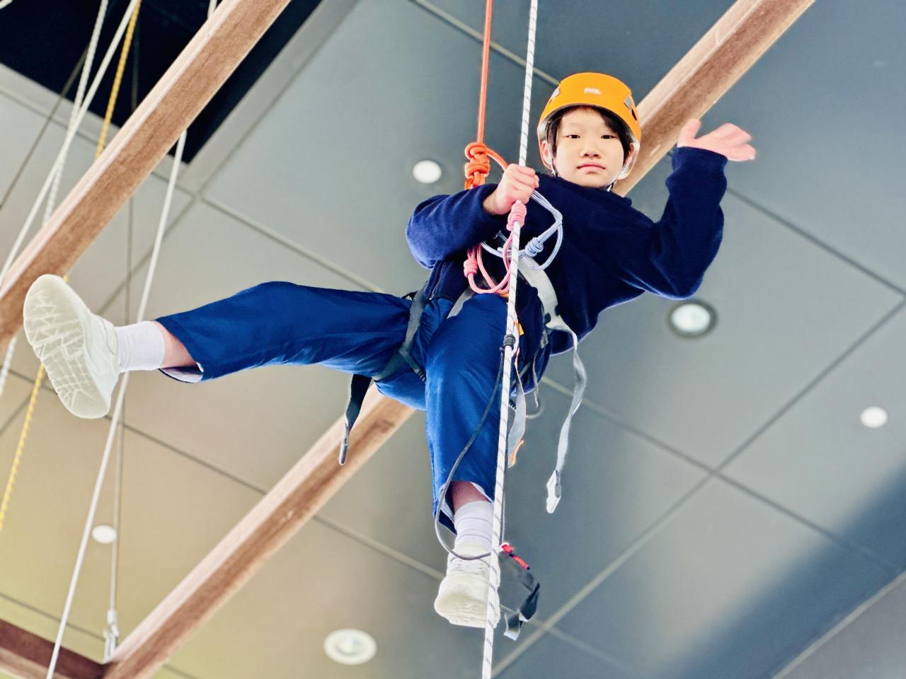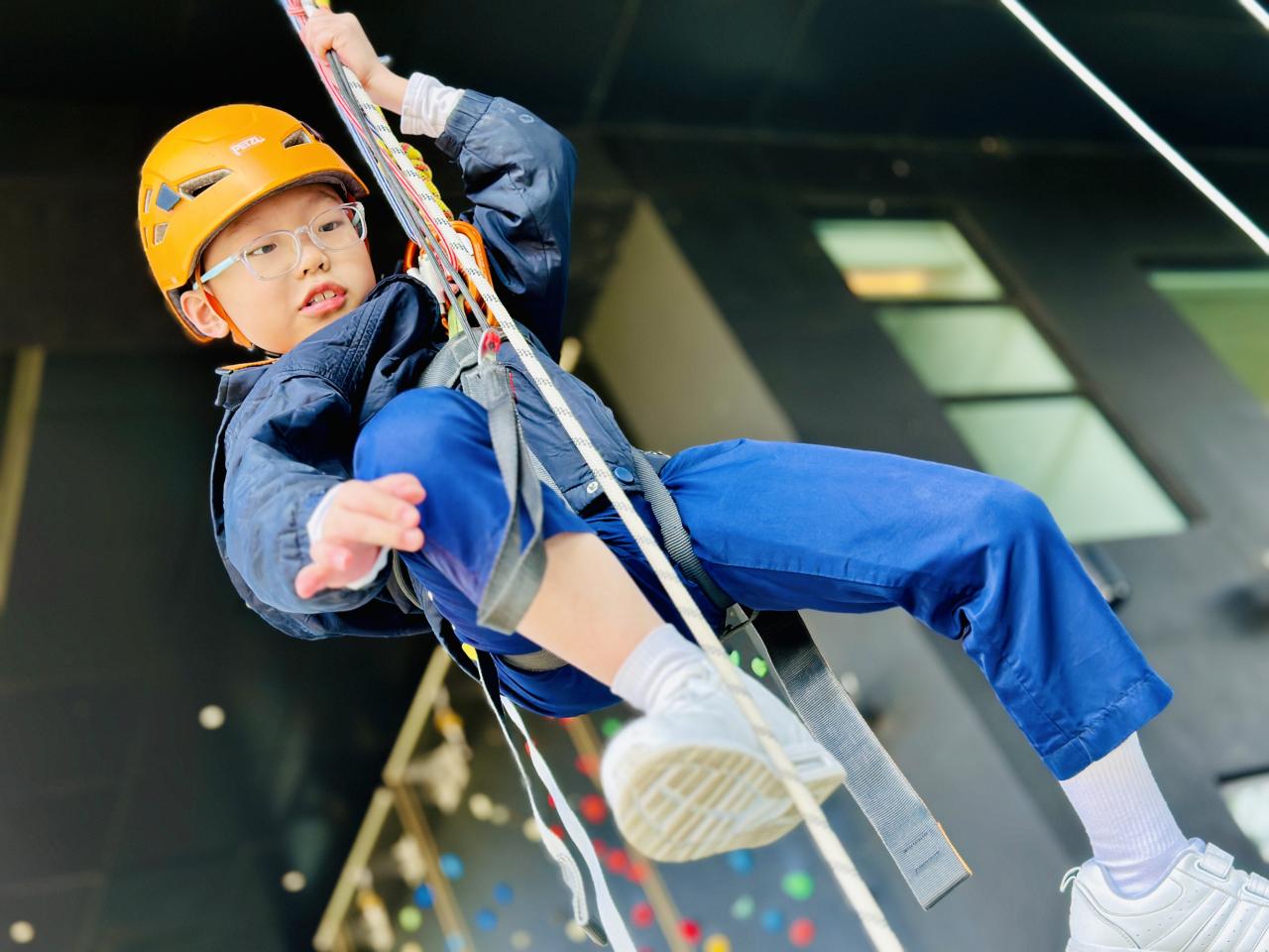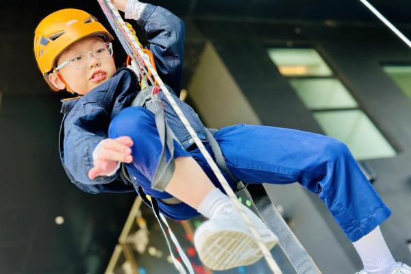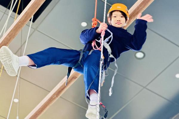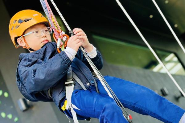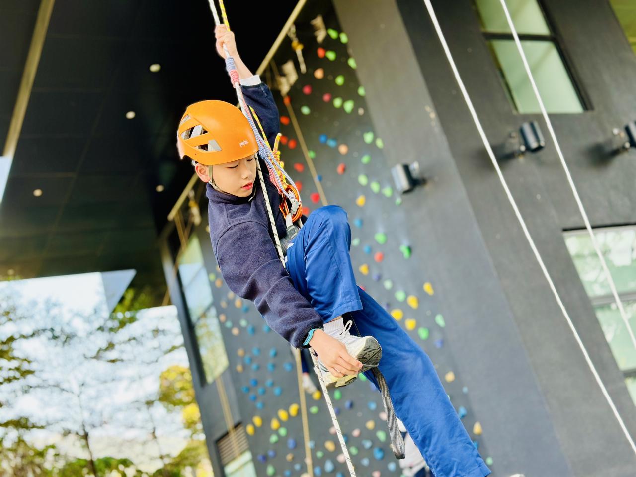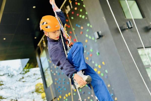 當天,同學們挑戰了運動攀登及沿繩上升體驗。在奧夢成真教練團隊的專業指導與耐心鼓勵下,學生們掌握了專業技巧,並在安全環境下勇敢突破心理關口,從高處克服恐懼,學會了堅毅不拔的精神與隊友間的互助與信任。