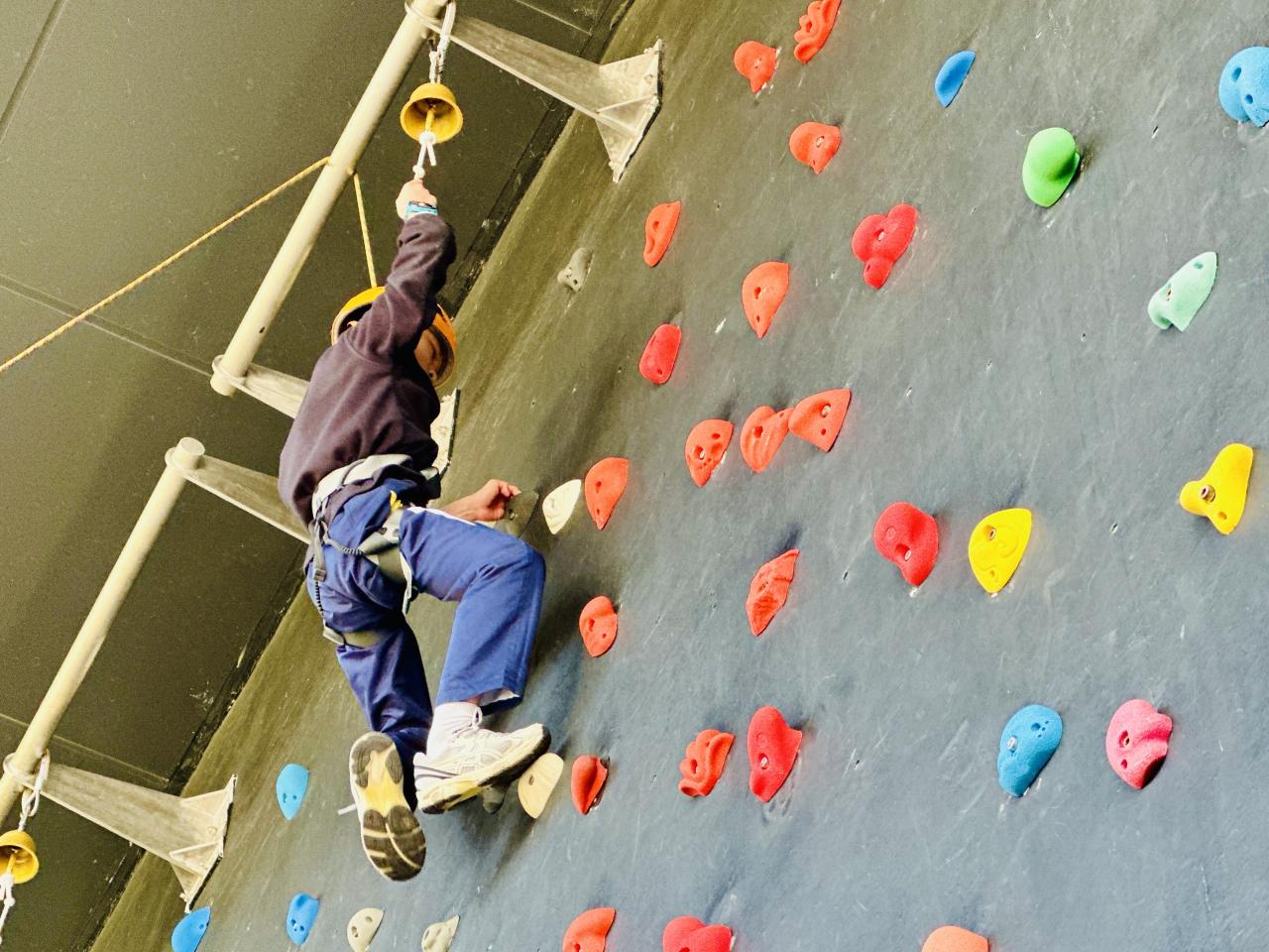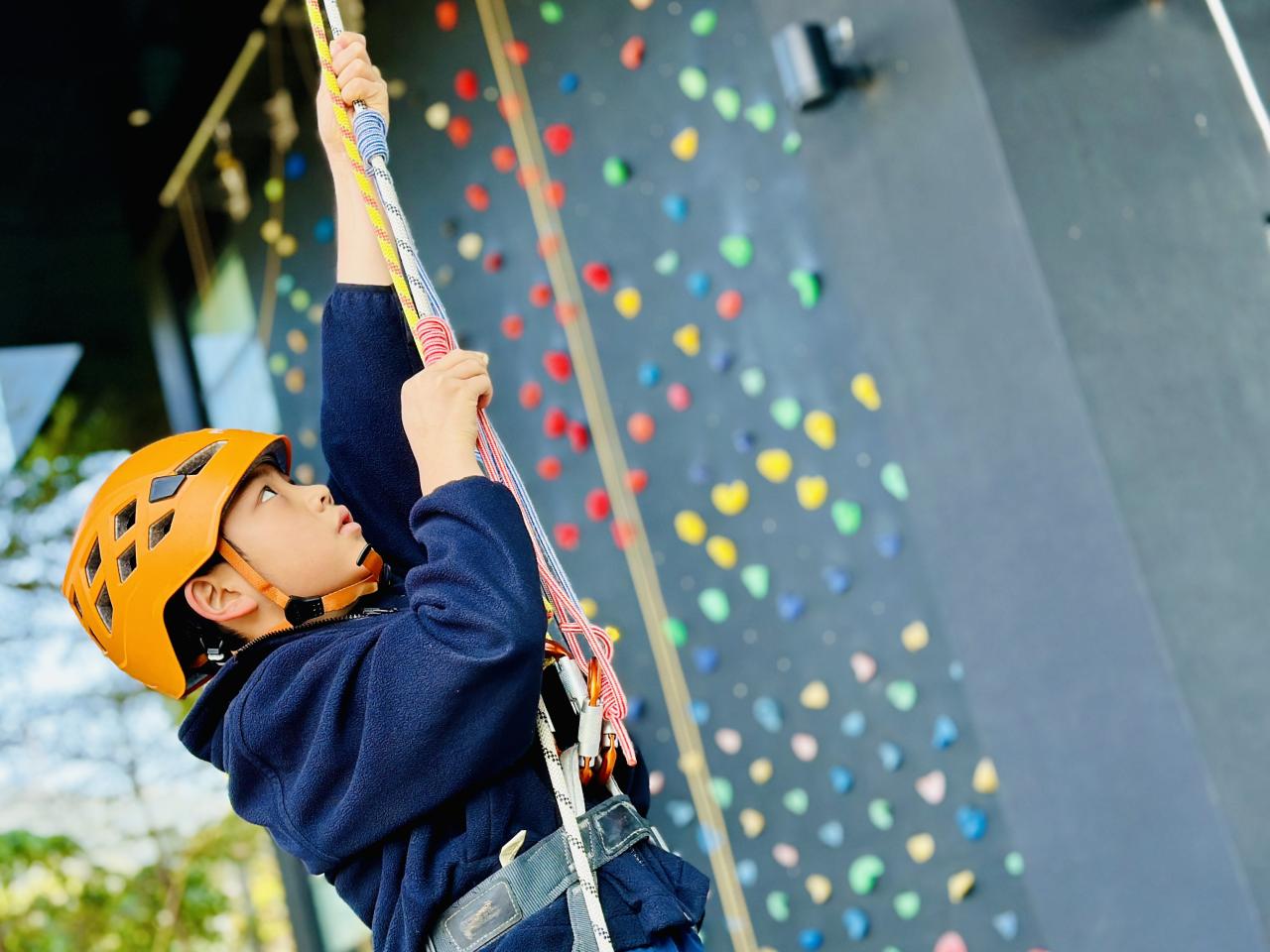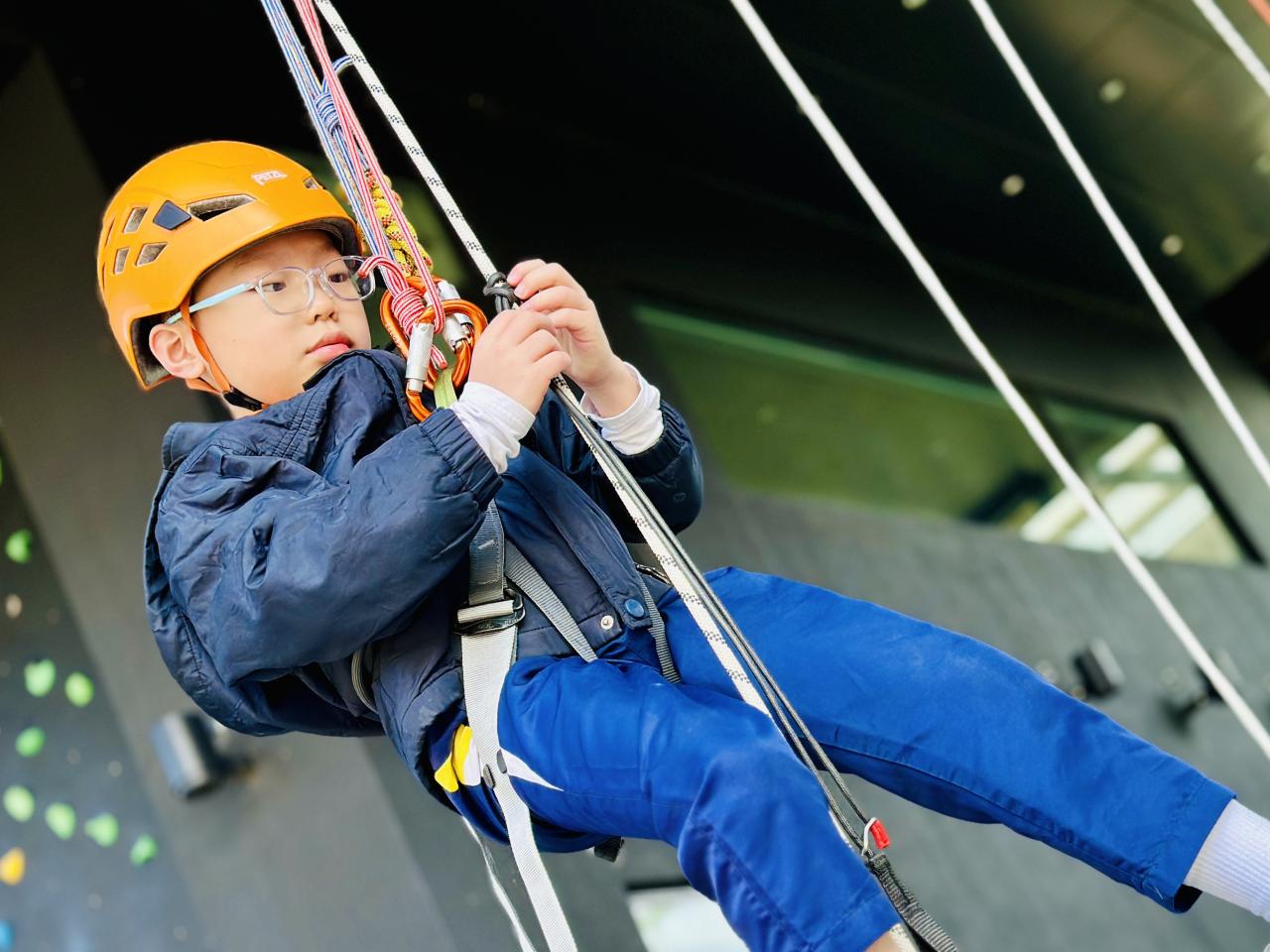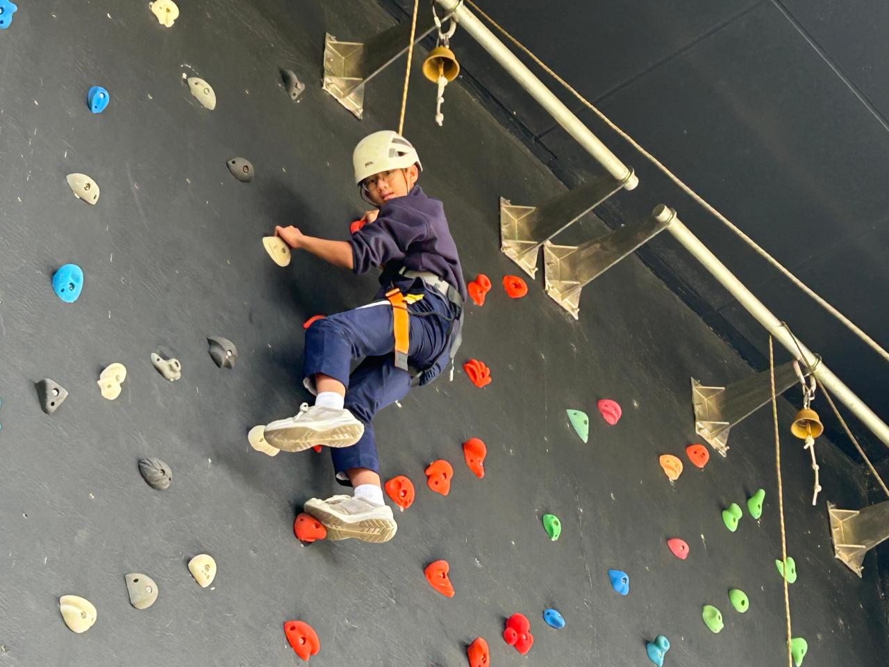 當天,同學們挑戰了運動攀登及沿繩上升體驗。在奧夢成真教練團隊的專業指導與耐心鼓勵下,學生們掌握了專業技巧,並在安全環境下勇敢突破心理關口,從高處克服恐懼,學會了堅毅不拔的精神與隊友間的互助與信任。