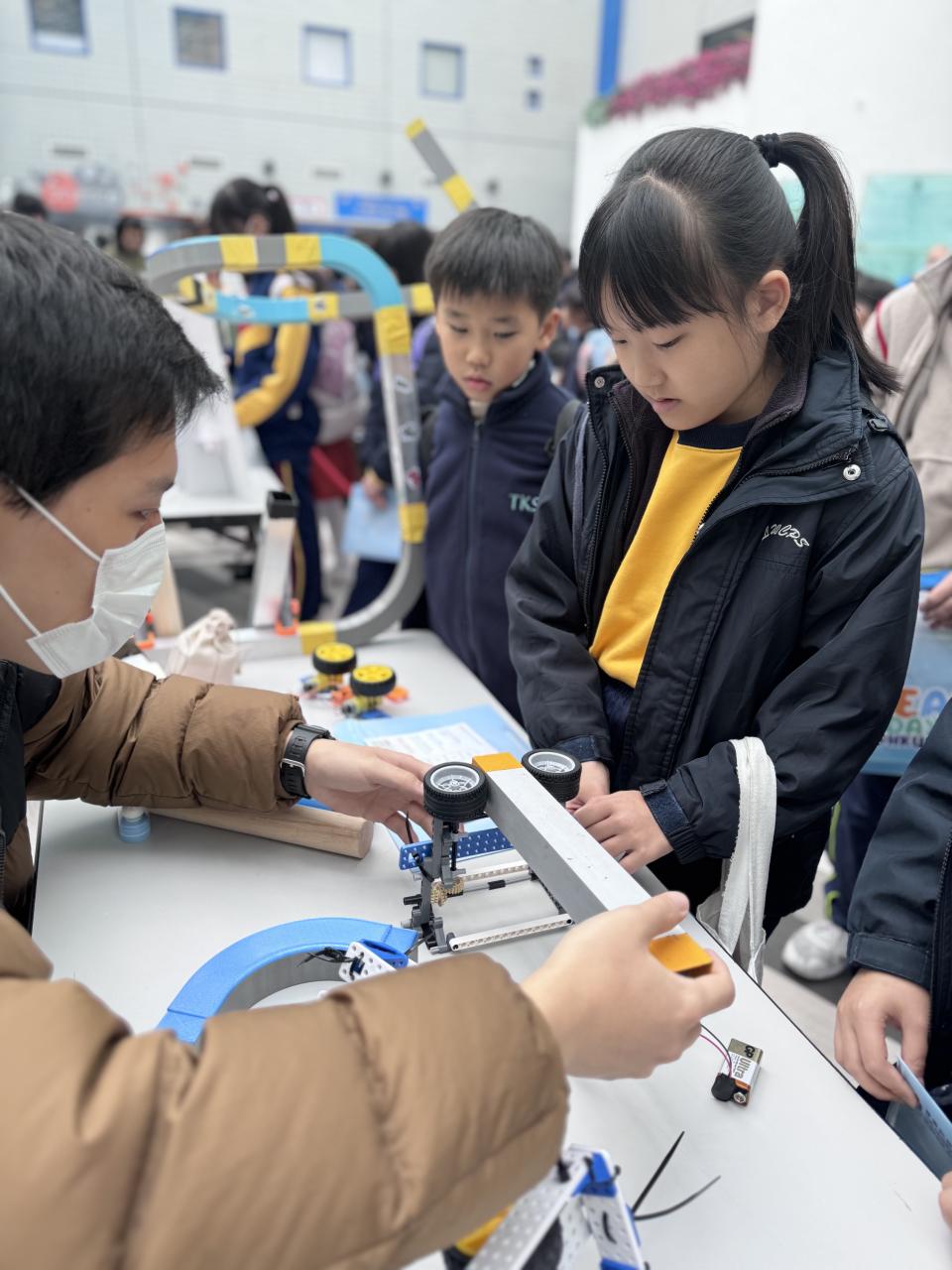 The event featured a variety of inspiring activities. Students first participated in a Paper Plane Workshop, where they learned the basic principles of aerodynamics through hands-on creation and experimentation. They also enjoyed various interactive STEAM game booths and DIY corners, completing scientific challenges in a fun and engaging environment. A major highlight was the robot demonstration and exhibition presented by HKUST student teams. The precision and innovative designs of the robots fascinated our students, sparking a deep interest in mechanical engineering and artificial intelligence.