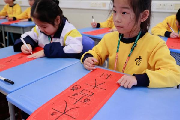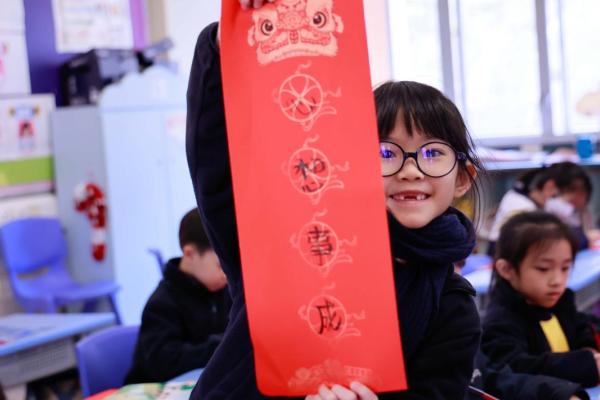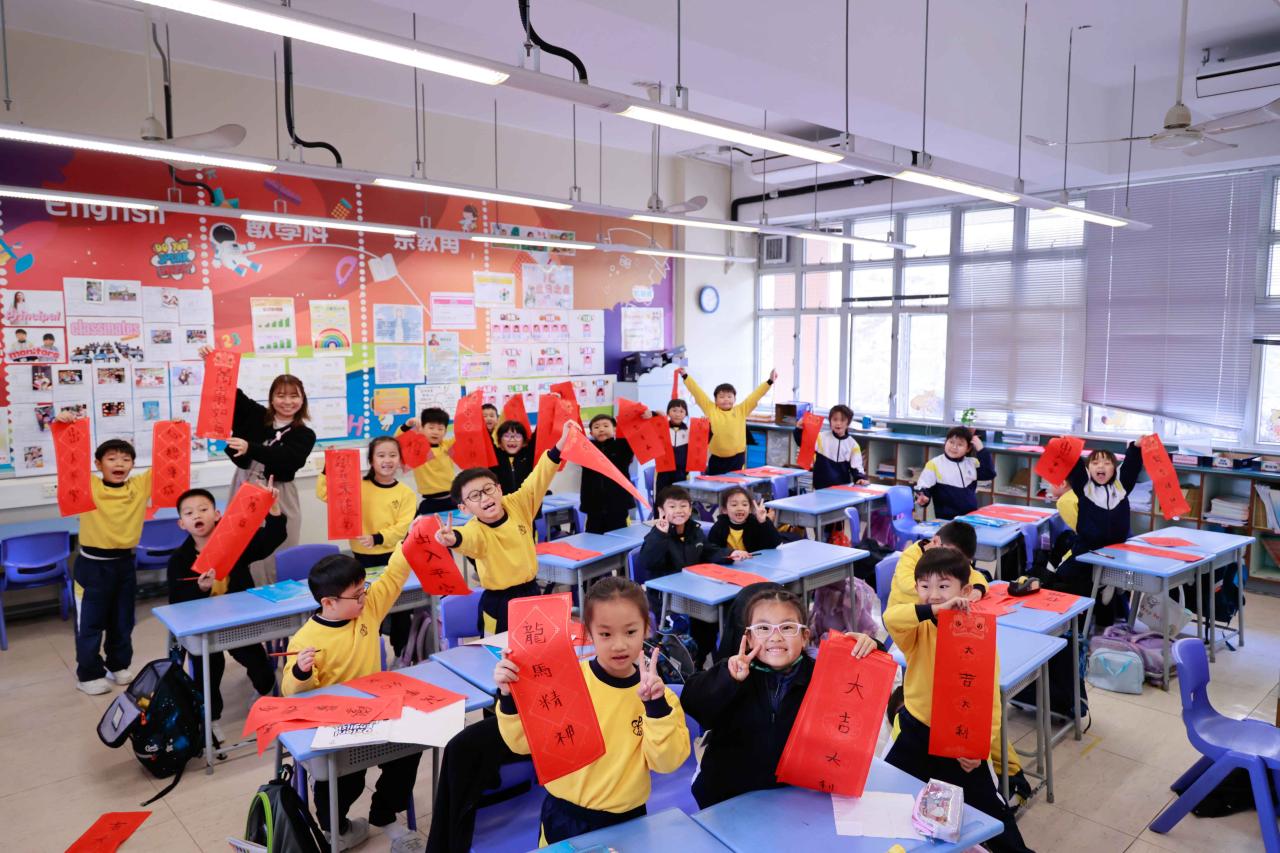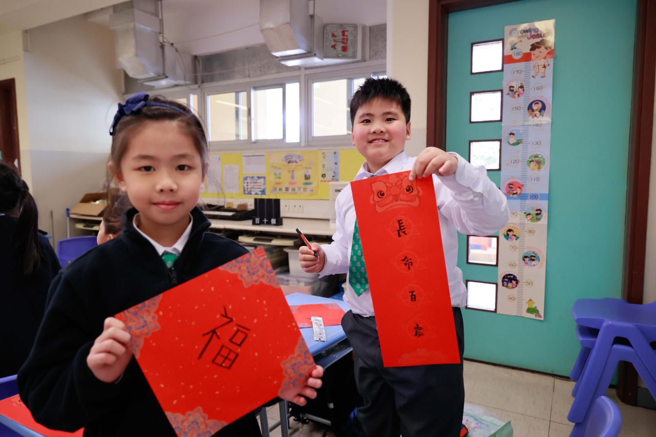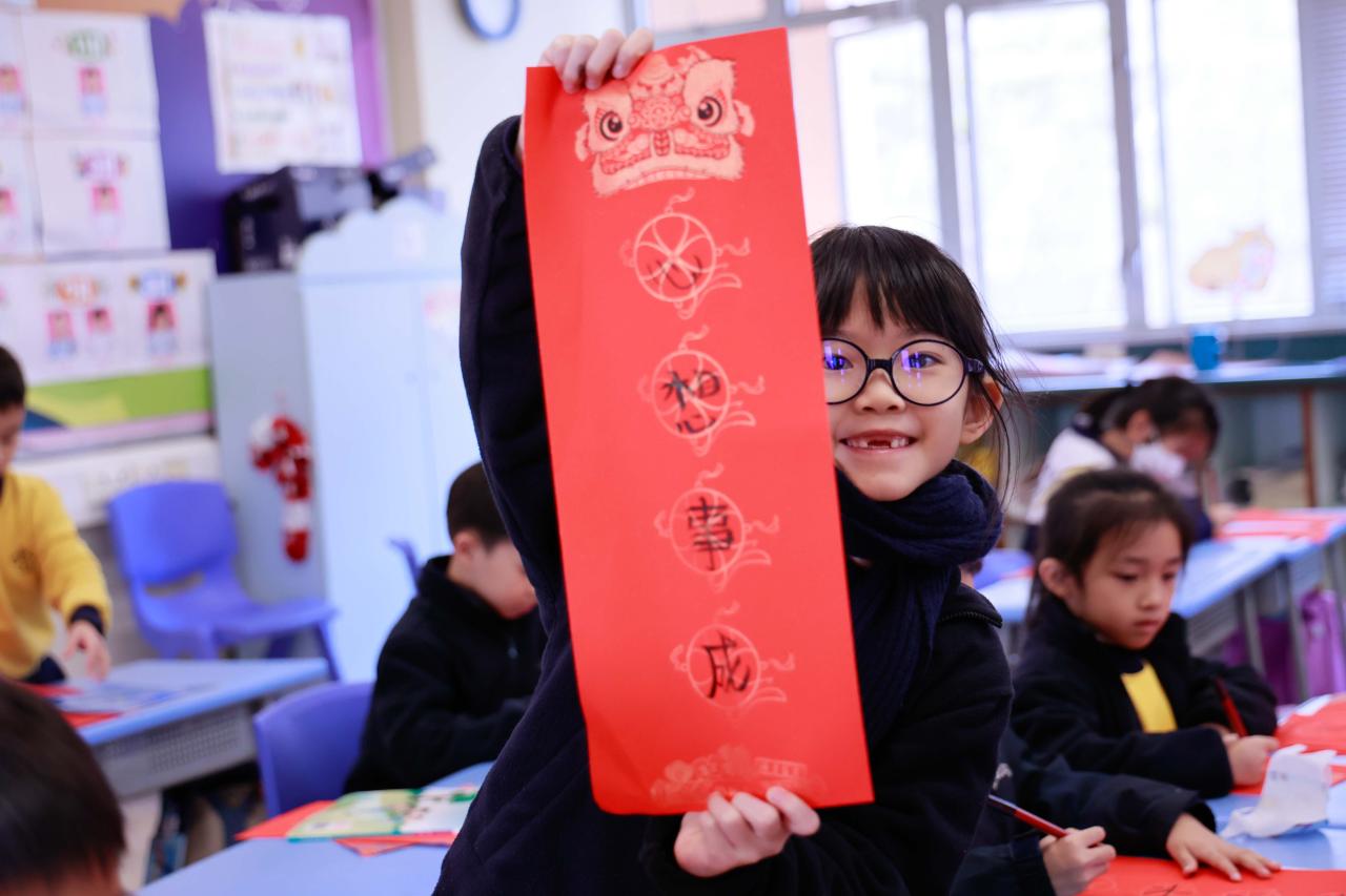 2026-01-26 農曆新年將至,校園洋溢着濃厚的節日氣氛。為了讓一年級學生感受傳統文化的魅力,本校於學滿FUN時段舉辦了製作揮春活動。在老師的悉心指導下,同學們首先認識了春聯的意義及「身體健康」、「學業進步」、「笑口常開」等祝福語,隨後便親手執筆揮毫,體驗書法的樂趣。在活動中,大家拿起毛筆時個個神情專注,一筆一畫寫下對新一年的美好期盼。活動不僅讓學生體驗到中國傳統藝術,更讓他們明白春聯背後承載的心願。在此,祝願各位家長和同學新春快樂,萬事如意,主恩滿溢!