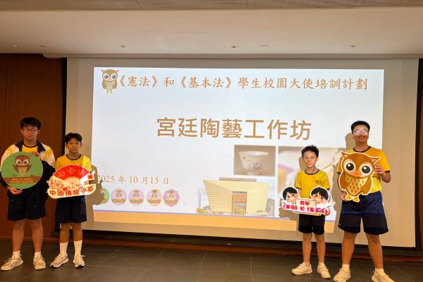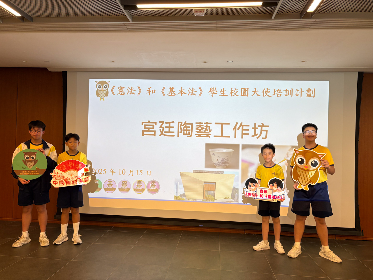 2025-10-15 國民及國安推廣大使於10月15日到香港故宮文化博物館參加由教育局主辦的《憲法》及《基本法》培訓活動,學習如何為三希堂的青花瓷磚上色,以及繪畫精緻的傳統紋飾,體驗陶瓷藝術之美。 各大使於工作坊中細心聆聽有關陶藝講解,用心替青花瓷磚上色。
