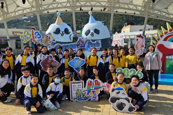 2026-03-13 為讓學生透過觀察及探索不同動物的特徵、行為與生活習慣,提升學生對《4Rs精神健康約章》中的休息、放鬆、人際關係和抗逆力的認識,了解身心健康的重要性。本校安排部分五年級學生於3月13日到海洋公園參與由教育局教育心理服務舉辦的「動物探索」精神健康同樂日。學生能夠了解金剛鸚鵡及鵰鴞長期與護理員相處以建立互信關係,並分享自己的抗逆心得。學生更參觀「大熊貓之旅」與雙胞胎加加得得及盈盈樂樂見面呢!