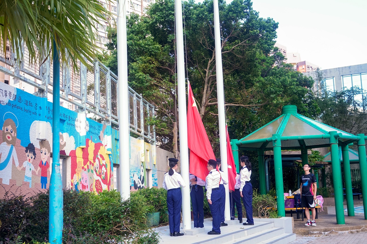 2025-09-30 為慶祝中華人民共和國成立七十六周年,本校全體師生於國慶日前夕一同進行升旗禮,隨着國旗緩緩升起,大家一起高唱國歌。及後,老師以國家的科技發展為題,為同學進行國旗下講話,勉勵學生為祖國的繁榮昌盛貢獻力量。最後,透過一起聆聽《保衛黃河》,讓學生體會到中國人民保家衛國的精神,並珍惜國家來之不易的和平。