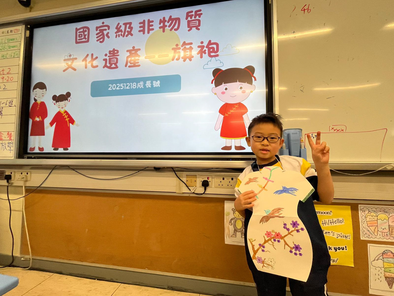 2025年12月18日,本校P.1-P.3學生在成長號時段參與了國民教育全接觸——國家級非物質文化遺產:旗袍。活動旨在讓學生親身感受中華傳統服飾的魅力,認識旗袍背後的歷史底蘊與工藝價值。
