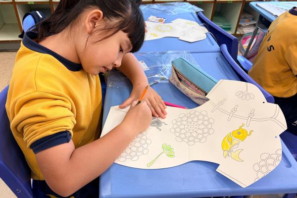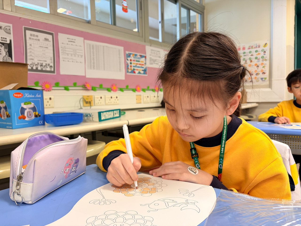 課堂上,老師透過生動的講解,引領學生了解旗袍作為非物質文化遺產的獨特性,以及旗袍師傅的堅持與勤奮。隨後進入最受歡迎的創作環節,學生們變身「小設計師」,發揮無窮創意與想像力,在旗袍畫稿上添上繽紛色彩。