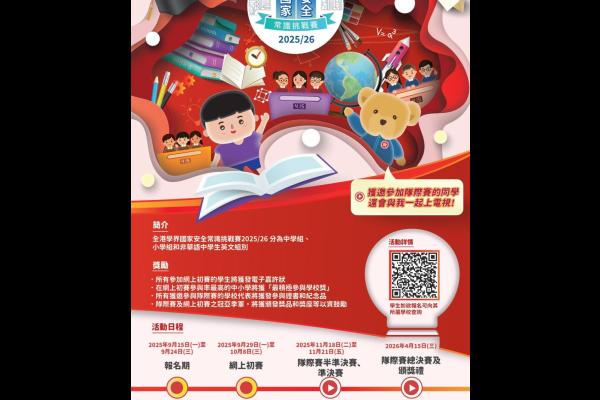 為讓國家安全教育繼續植根校園,加強學生對國家安全的不同領域和法律的認識,包括國家《憲法》、《基本法》、《香港國安法》以及 《維護國家安全條例》,藉以提升他們維護國家安全的意識,同時配合每年10月1日的「國慶日」及4月15日的「全民國家安全教育日」,律政司、保安局、教育局及善德基金會在本學年繼續合作舉辦「全港學界國家安全常識挑戰賽(2024/25)」,鼓勵全港學生共同參與,營造維護國家安全的氛圍,凝聚維護國家安全的力量。