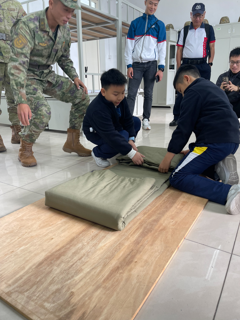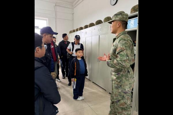 2025-12-14 樂天升旗隊獲少年警訊總會邀請,日前往赤柱軍營參觀及學習。軍營中解放軍軍官威風凜凜,莊嚴肅穆,展現中國解放軍的嚴謹的訓練。解放軍們態度親切,耐心解說,同學們認真聆聽。同學們在軍官的帶領下有序地參觀了不同的槍械和軍事用車,更參觀了解放軍宿舍,親身體驗了著名的豆腐磚摺被法。最後,同學們體驗了解放軍平時的訓練項目,又參觀著名的赤柱炮台,了解當年炮台如何守護香港的作戰歷史。同學於今次的活動獲益良多,了解作為軍人的嚴格紀律,相信能有助於往後的升旗隊訓練中。