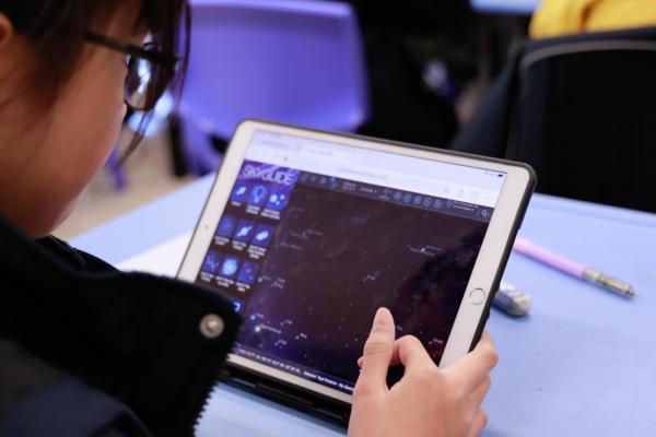 五年級學生則帶領大家仰望星空,探索「我們如何利用星空導航?」。課堂引導學生認識星座位置與天體運行的規律。學生在模擬活動中嘗試利用北極星辨別方向,理解古代航海家在茫茫大海中如何利用天文知識指引航程。這課程不僅豐富了學生的天文知識,更激發了他們對宇宙奧秘的無限想像。