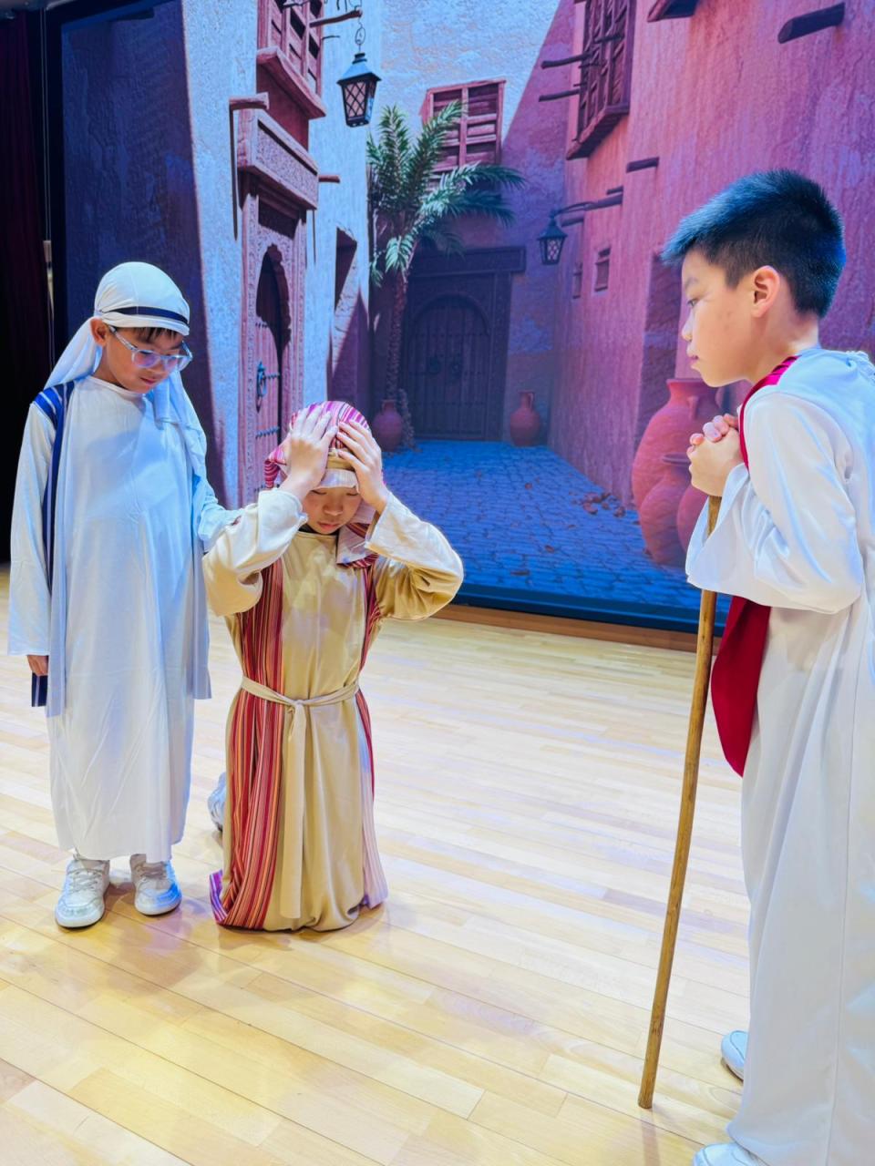 The play explored the profound meaning of Easter. Guided by three angels, students travelled through biblical stories to rediscover the essence of the holiday beyond chocolates and egg hunts. By portraying the compassion of the Good Samaritan, the hope of the Lost Sheep, and the forgiveness of the Prodigal Son, our young actors articulately conveyed messages of love and renewal.