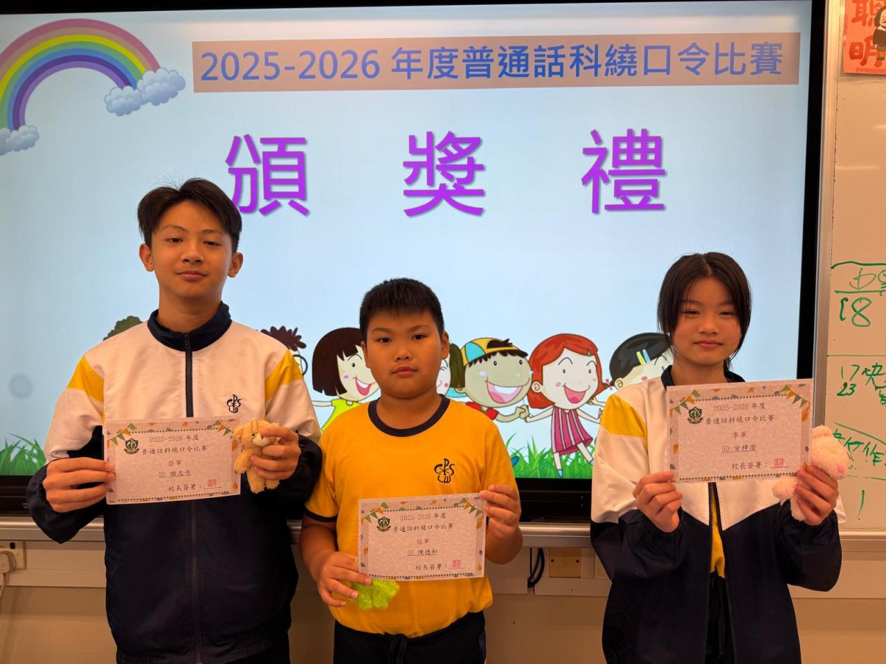為增加學習普通話的趣味性,本校於1月28日至2月12日舉行隨堂「普通話繞口令比賽」。學生兩人一組互相比賽與記錄,在限時內挑戰精準發音與語速。課室氣氛熱烈,不少同學更即席表演,展現出色的語言潛能。恭喜所有獲獎同學,是次活動有效提升了大家的表達能力與學習熱情,讓校園洋溢着愉快的學習氣息。