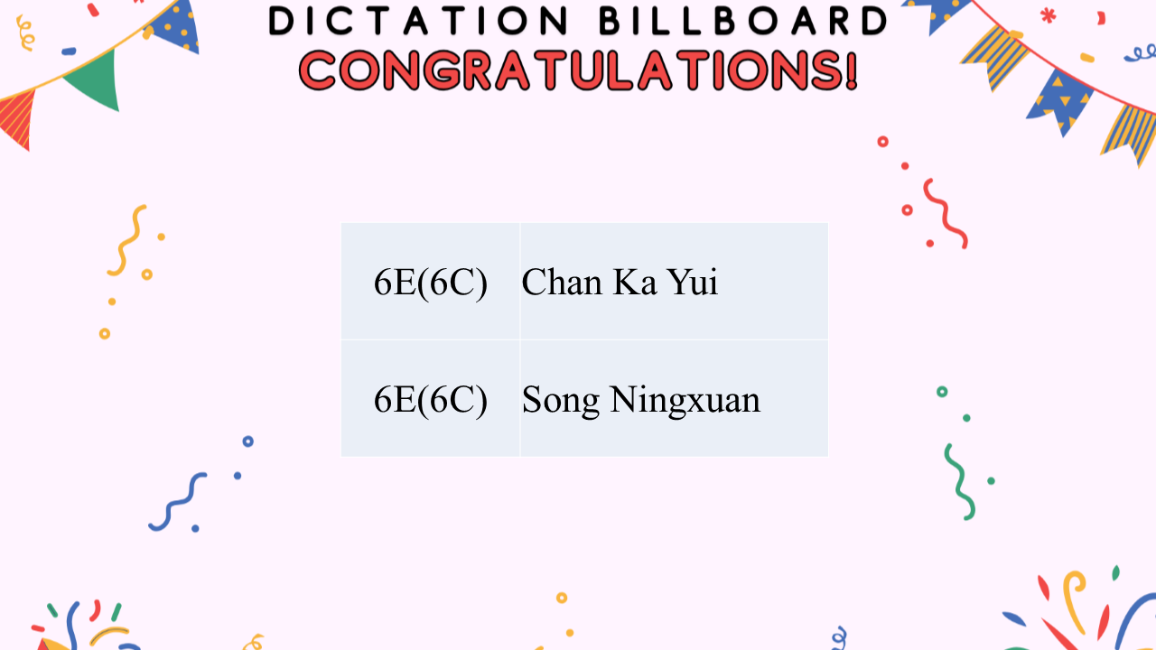 Bravo to everyone who earned full marks on the English Dictation! Your commitment to excellence is inspiring. Let this success be the stepping stone to your next great achievement. Keep aiming high!
