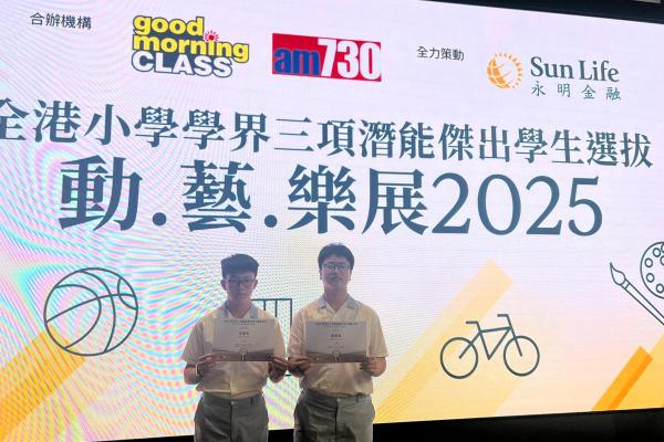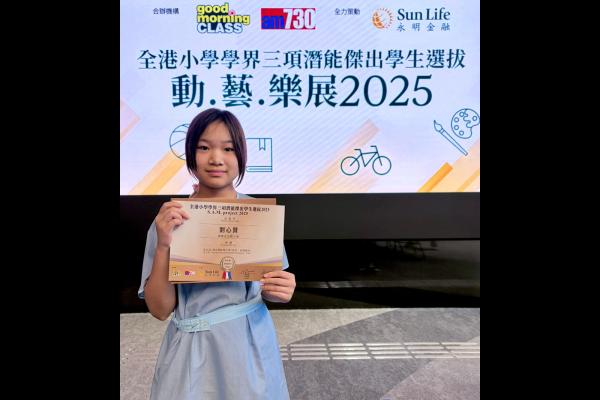熱烈恭賀本校得獎同學於全港小學學界三項潛能傑出學生選拔2025榮獲B.O.B. 傑出潛能學生獎 – 劉心賢((視覺藝術)及 潛能學生獎 - 姚凱嵐(音樂-鋼琴+唱歌)、黃司雅(藝術-拉丁舞)、梁睿熙(運動-田徑)、黃楷霖(運動-田徑)。