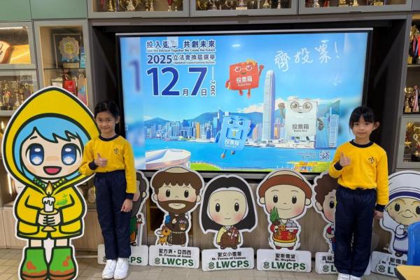 本校於12月3日舉行PTA早晨宣傳,鼓勵家長積極參與2025年立法會換屆選舉投票,履行公民責任。12月4日早會升旗禮後,教師和國民及國安推廣大使以「國家憲法及選舉」為主題發表國旗下講話,強調2025年立法會換屆選舉的重要性及廉潔選舉理念。當日全校師生獲派選舉紀念品並合照,校園大電視亦展示選舉海…